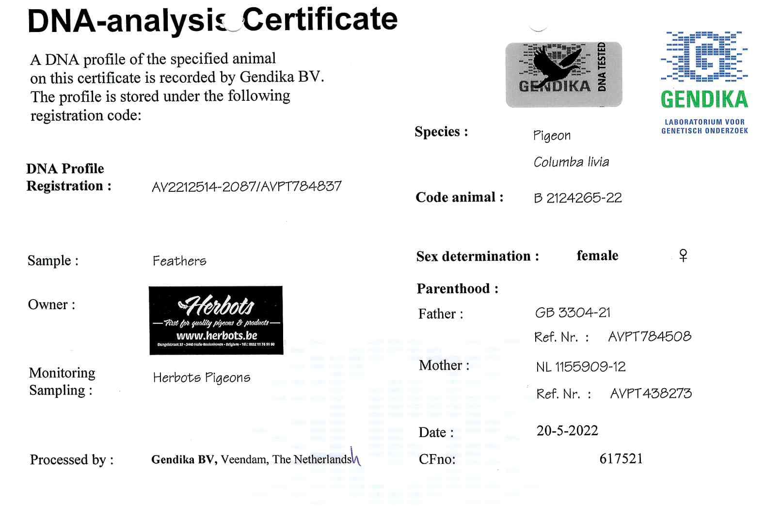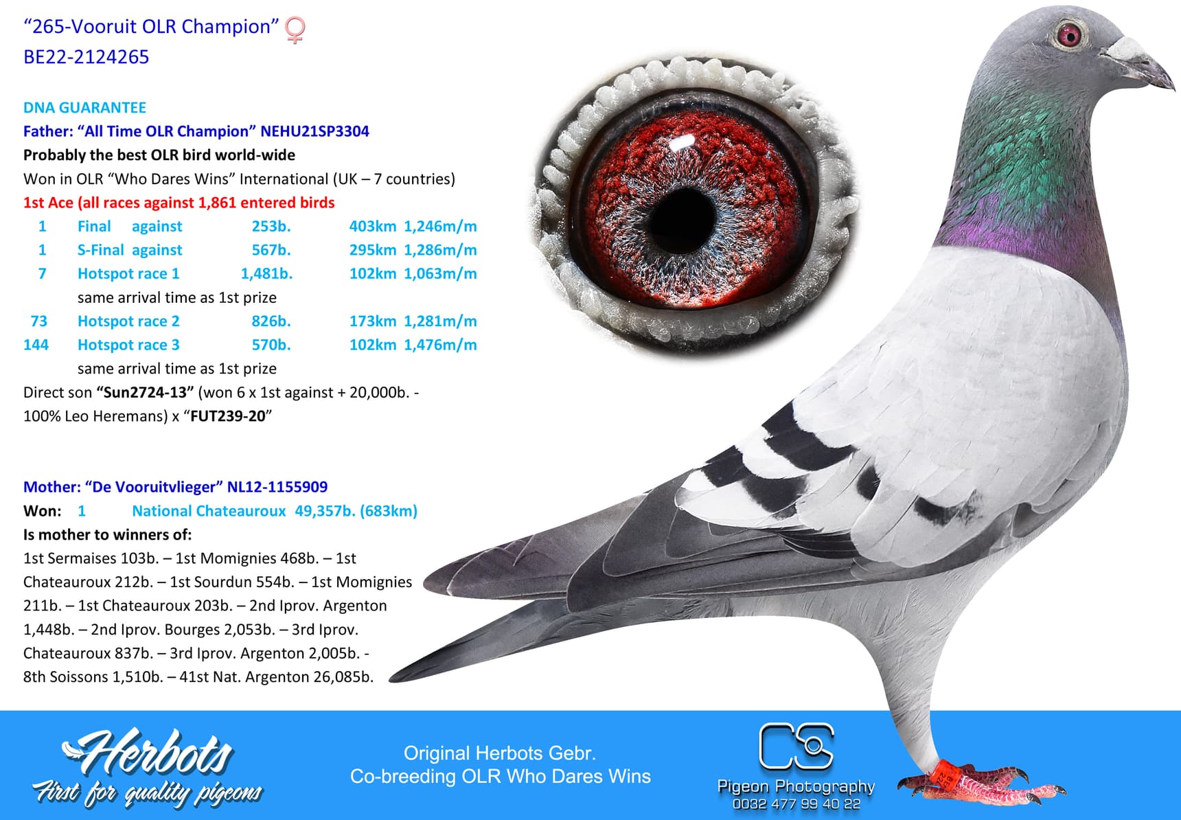 Direct son “Sun2724-13” (won 6 x 1st against + 20,000b. - 100% Leo Heremans) x “FUT239-20”