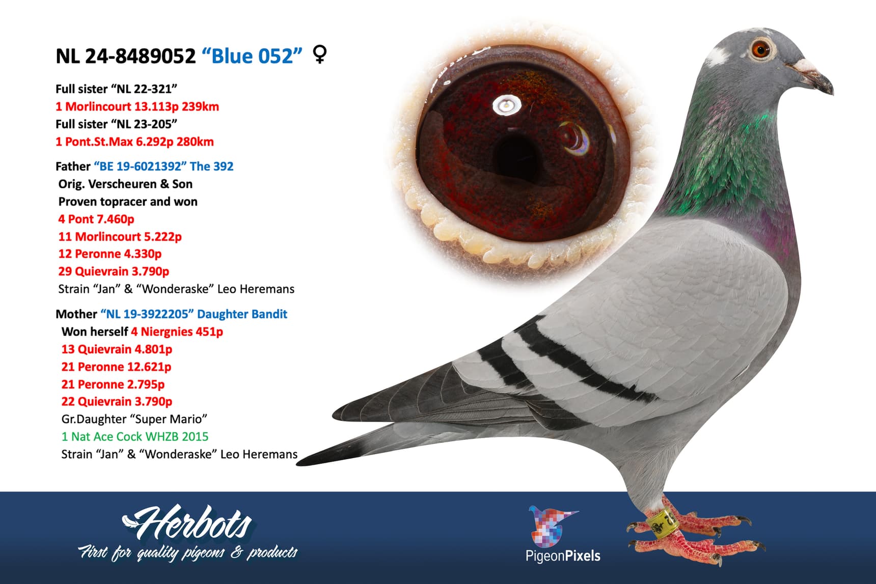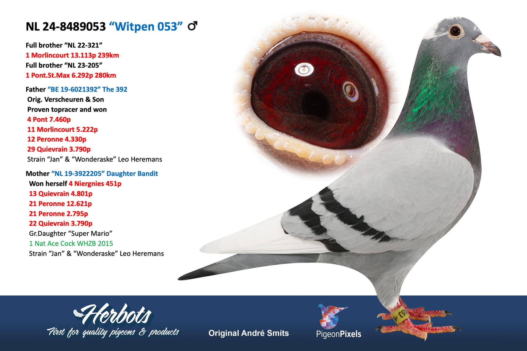 These winners have the blood of Leo Heremans and A & B Leideman. In addition, André will offer brothers, sisters and children of these winners together with 2 children from his best breeding couple.