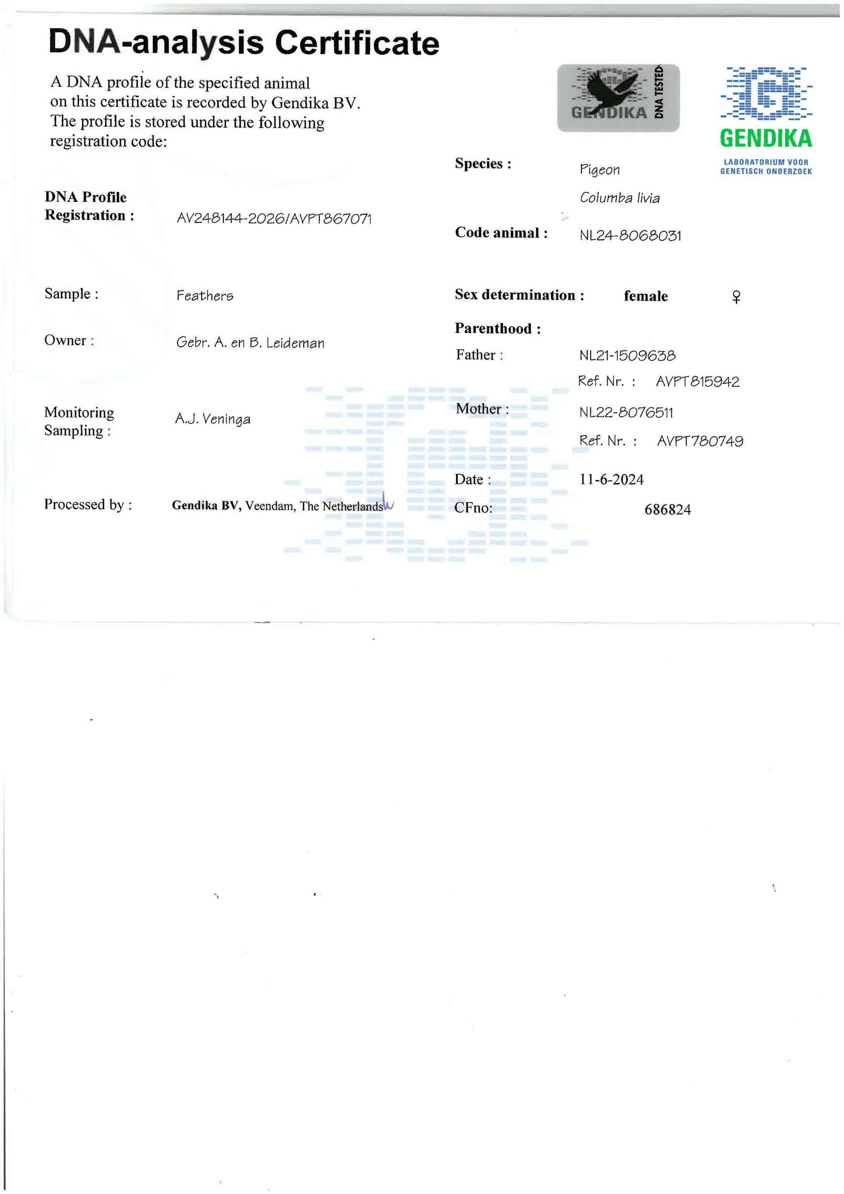 Breeder: LEIDEMAN GEBR. 雷德曼兄弟