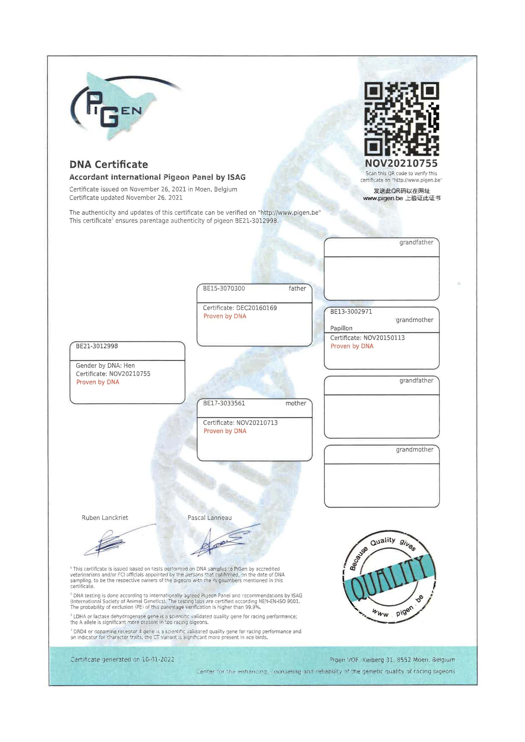 Breeder: MAES ANTHONY 安东尼·麦斯