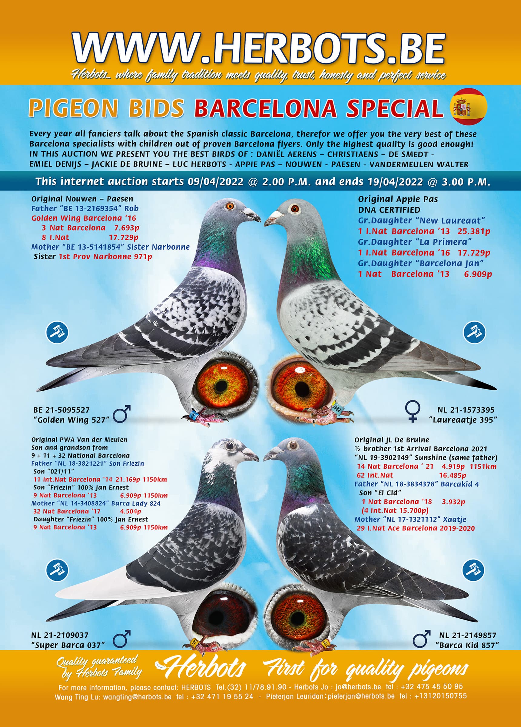Every year all fanciers talk about the Spanish classic Barcelona, therefor we offer you the very best of these Barcelona specialists with children out of proven Barcelona flyers. Only the highest quality is good enough !