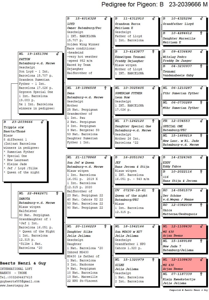 Breeder: INTERNATIONAL LOFT BAERTS-THONE