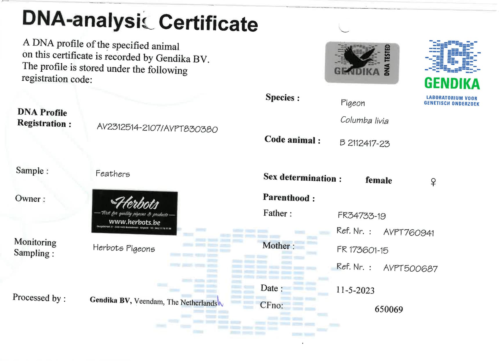 Breeder: HERBOTS GEBR. 贺伯特兄弟