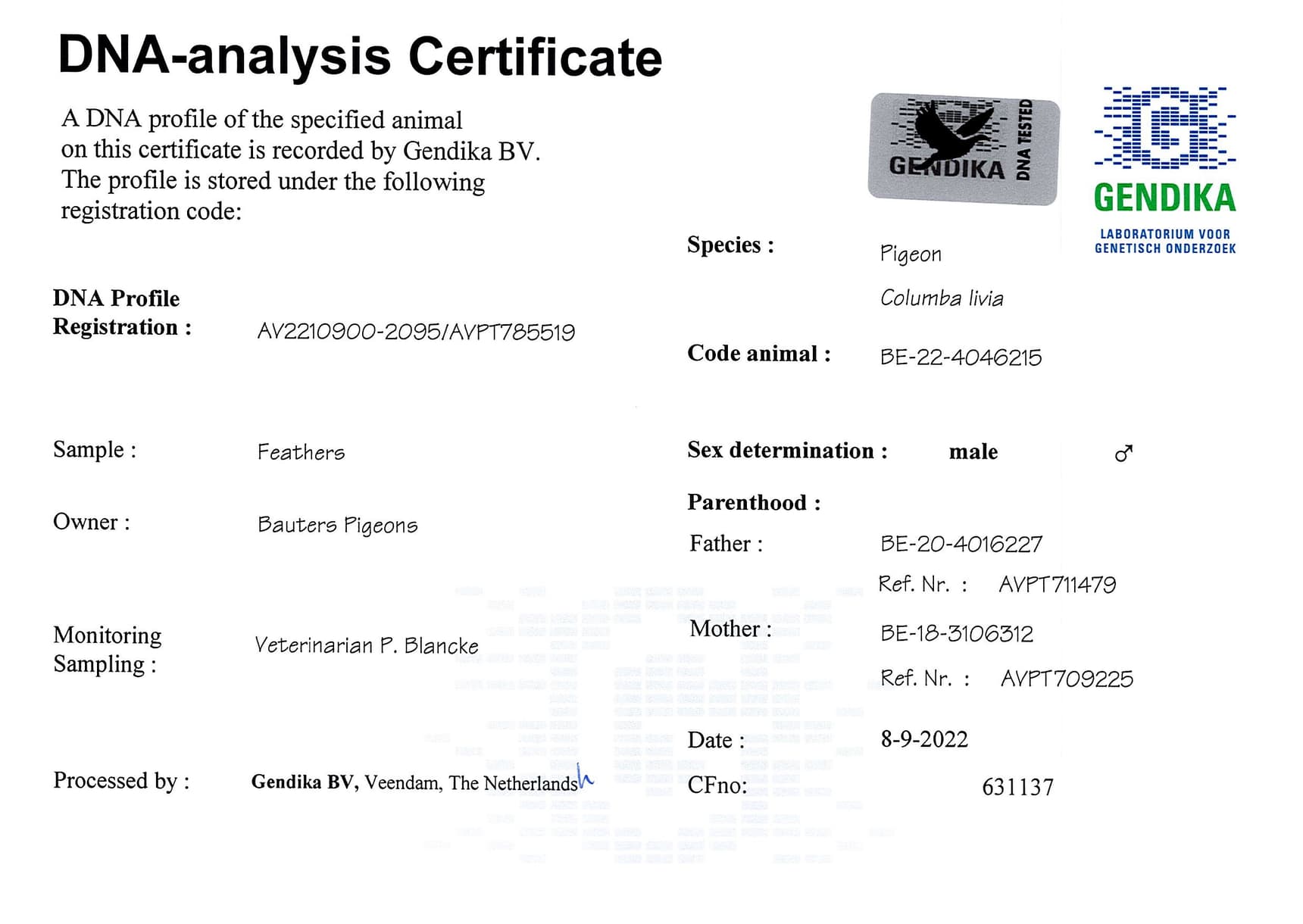 Direct son “Pirlo” (Son “Fabian”, winner of 1st National Poitiers ’14 – 1st Prov. Bourges ’12) x “Ester”