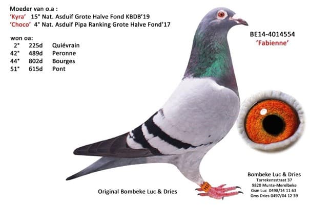 His 1/2 sister is with Robert Lech in Poland, the mother of the 2nd national ace pigeon long-distance 2025