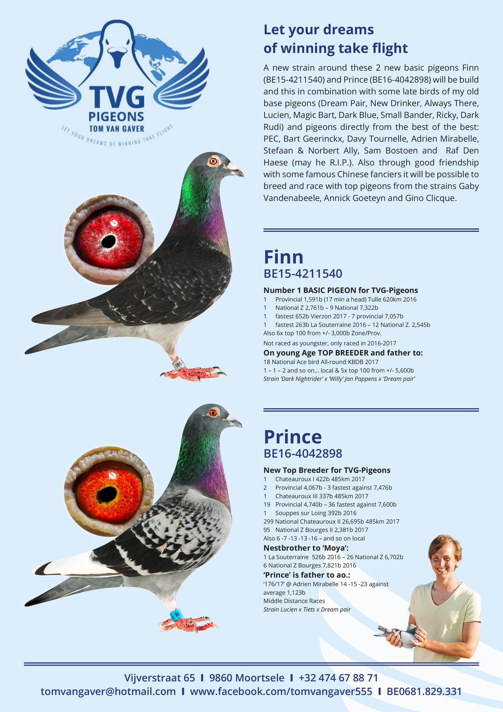 Grandson “Finn” Tom Van Gaver. “Finn” won: 9th Nat. Tulle 7.322b.