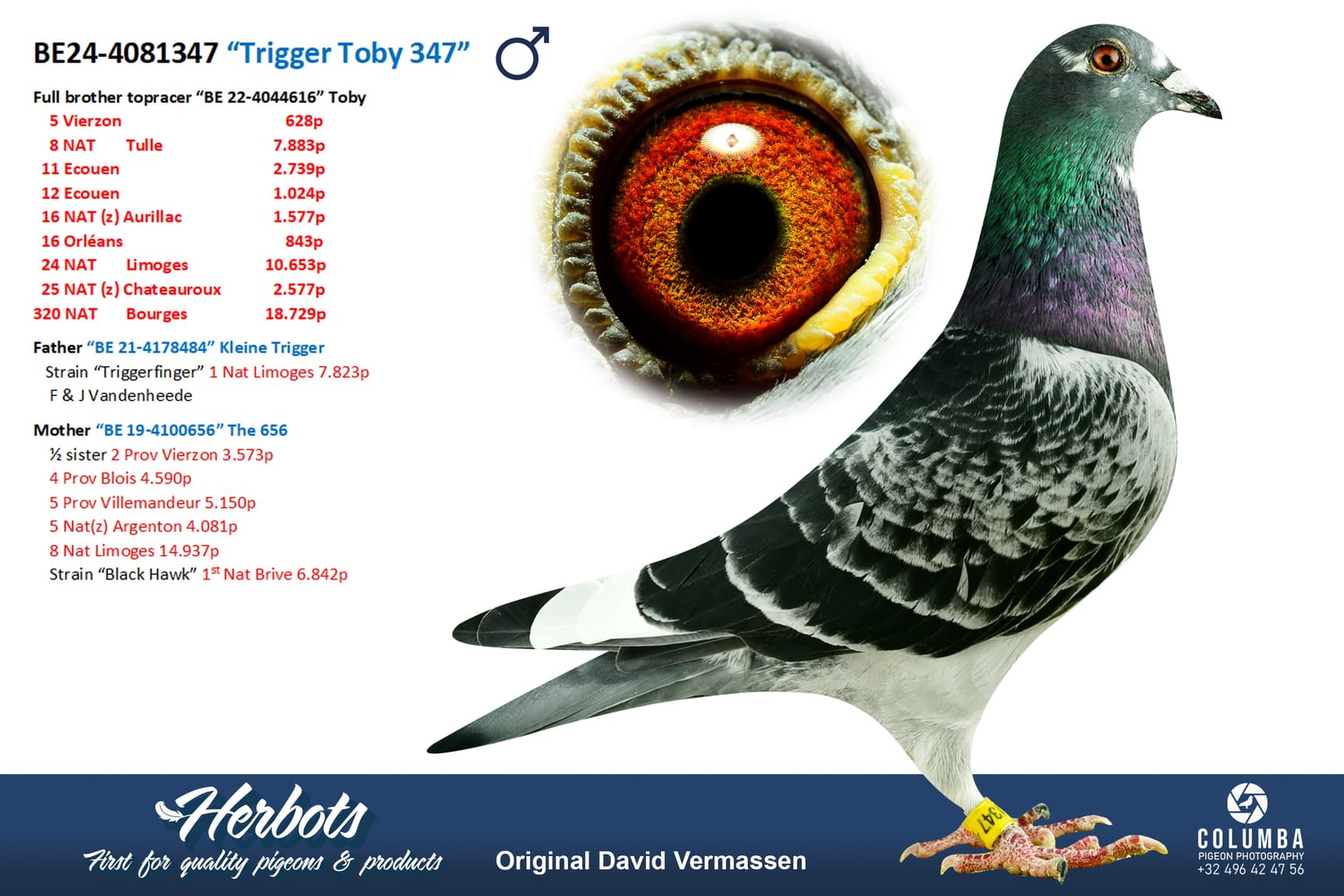 "Trigger Toby 347" and "Trigger Lady 406" is a full brother and sister from "Toby" 8 NAT Tulle 7.883p, 16 Nat (z) Aurillac 1.577p, 24 NAT Limoges 10.653p