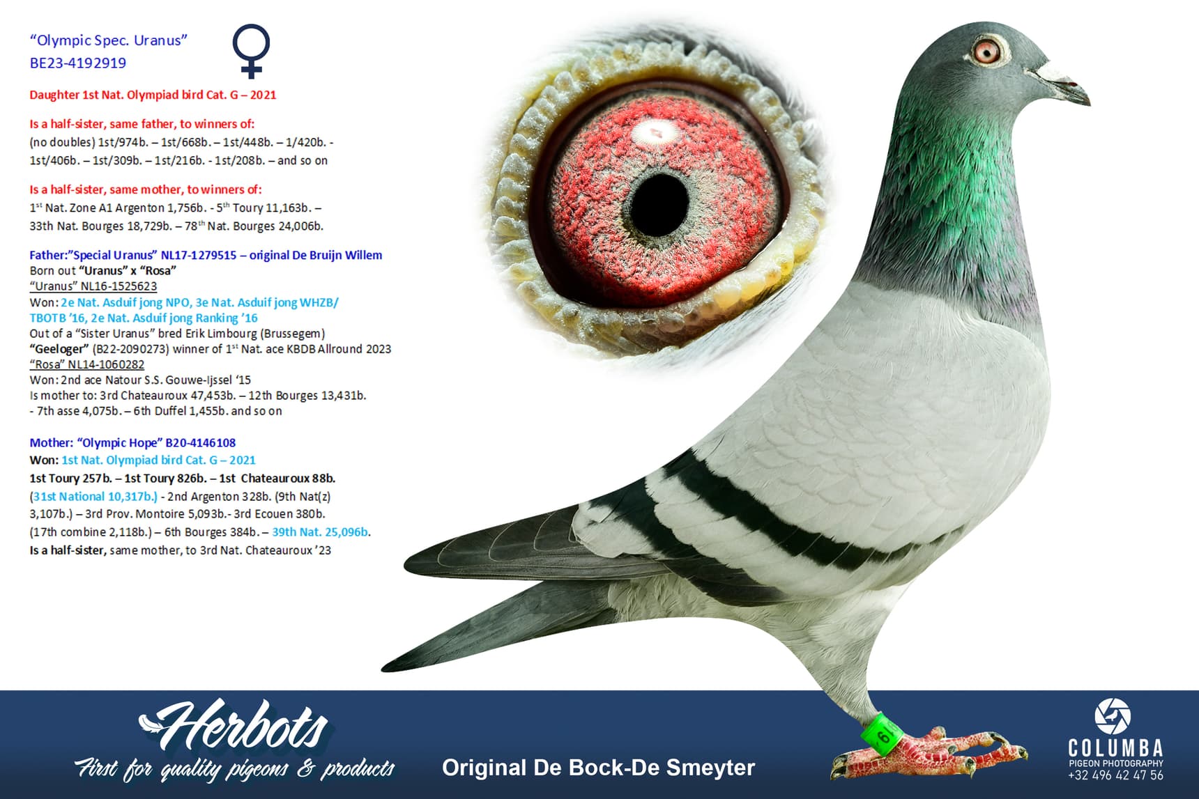 "919-23": daughter Olympiad bird "Olympic Hope" x x "Special Uranus" (son "Uranus" Willem de Bruijn)