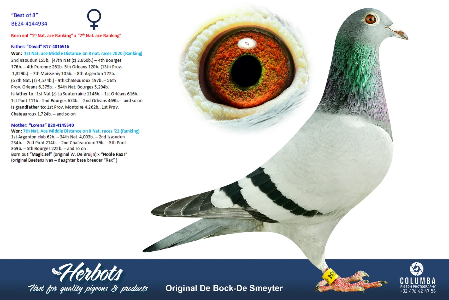 "934-24": Daughter "David" (1st Nat. ace on 8 national races 2020 Pipa Ranking) x "Lorena" (7th Nat. ace on 8 national races 2020 Pipa Ranking)