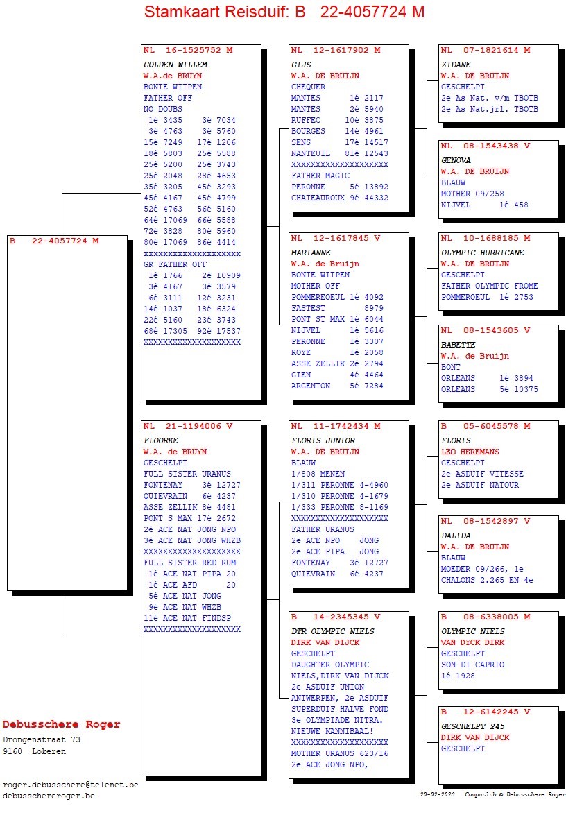 Breeder: 100% WILLEM DE BRUIJN 纯威廉迪布恩血统