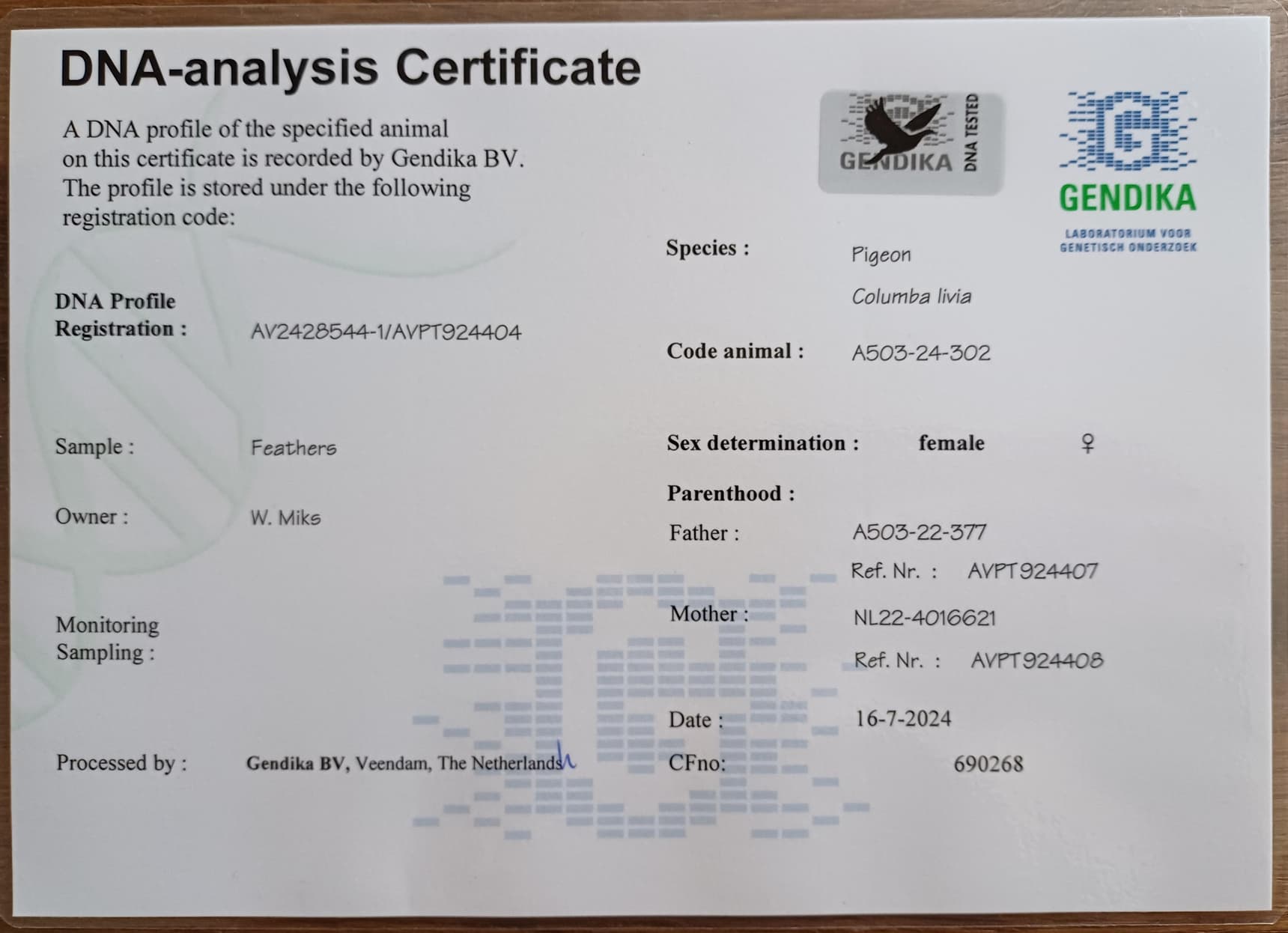 Mother: “Djoeke” NL22-4016621 – original van Venrooij