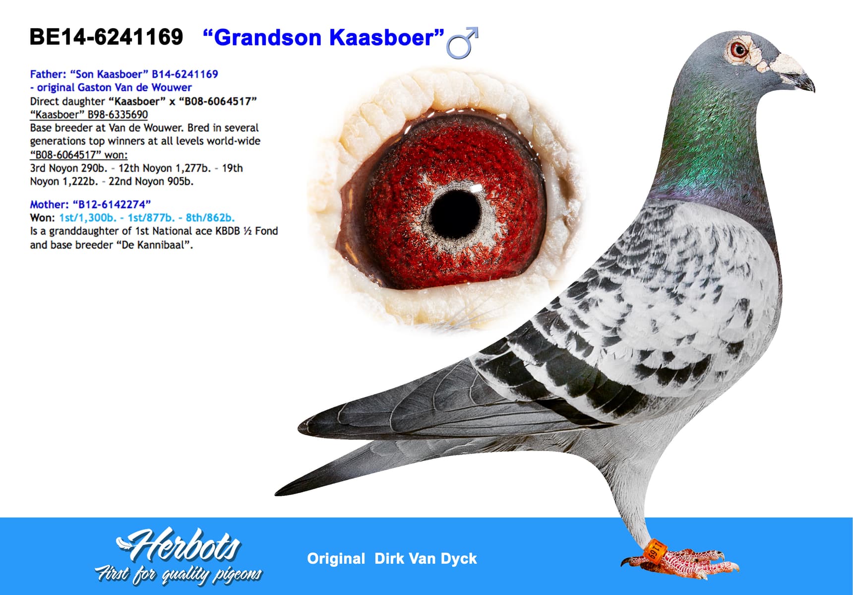 Born out “Salgo” (father to fastest 4,157b.) x “Mariska” (mother to “Porto” (4th Nat. ace KBDB) - “Tibo” (fastest Toury 11,313b.) – “Mambo” (14th Nat. Argenton 21,092b.))