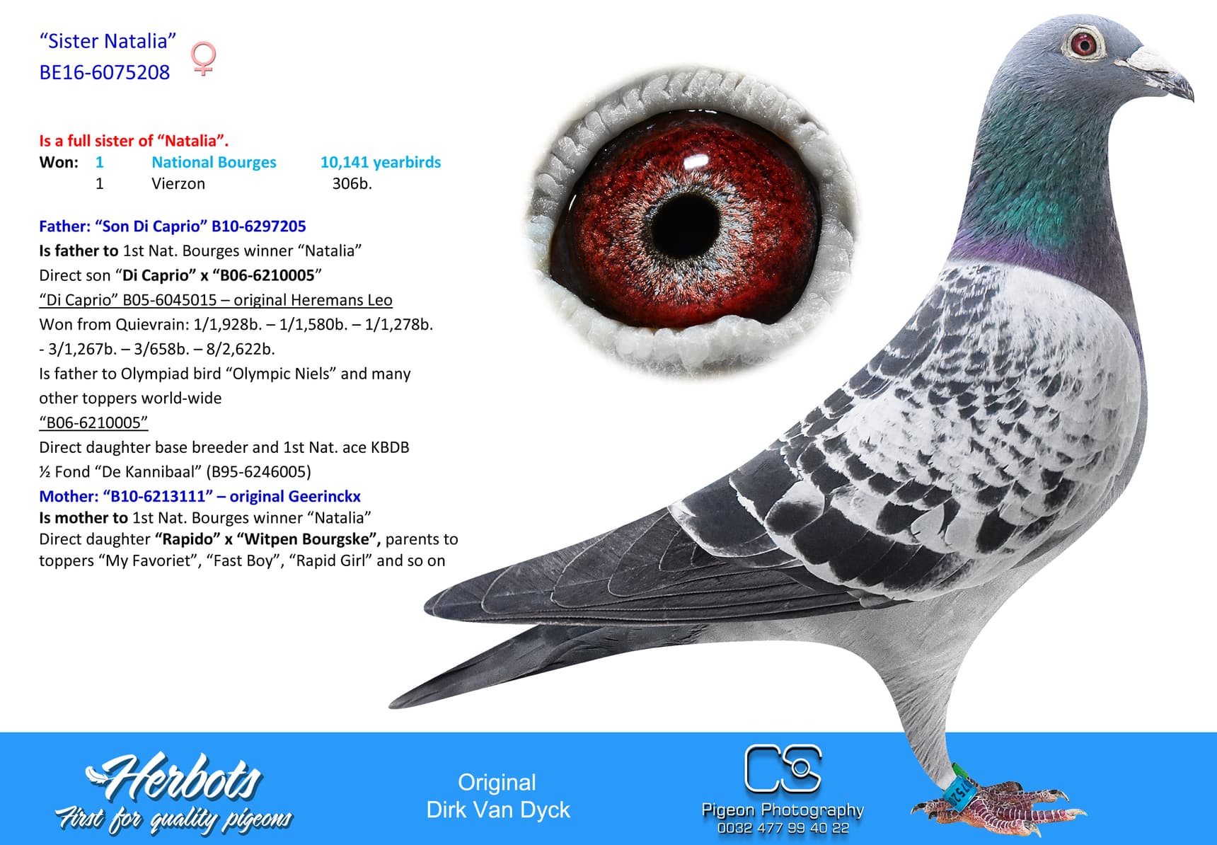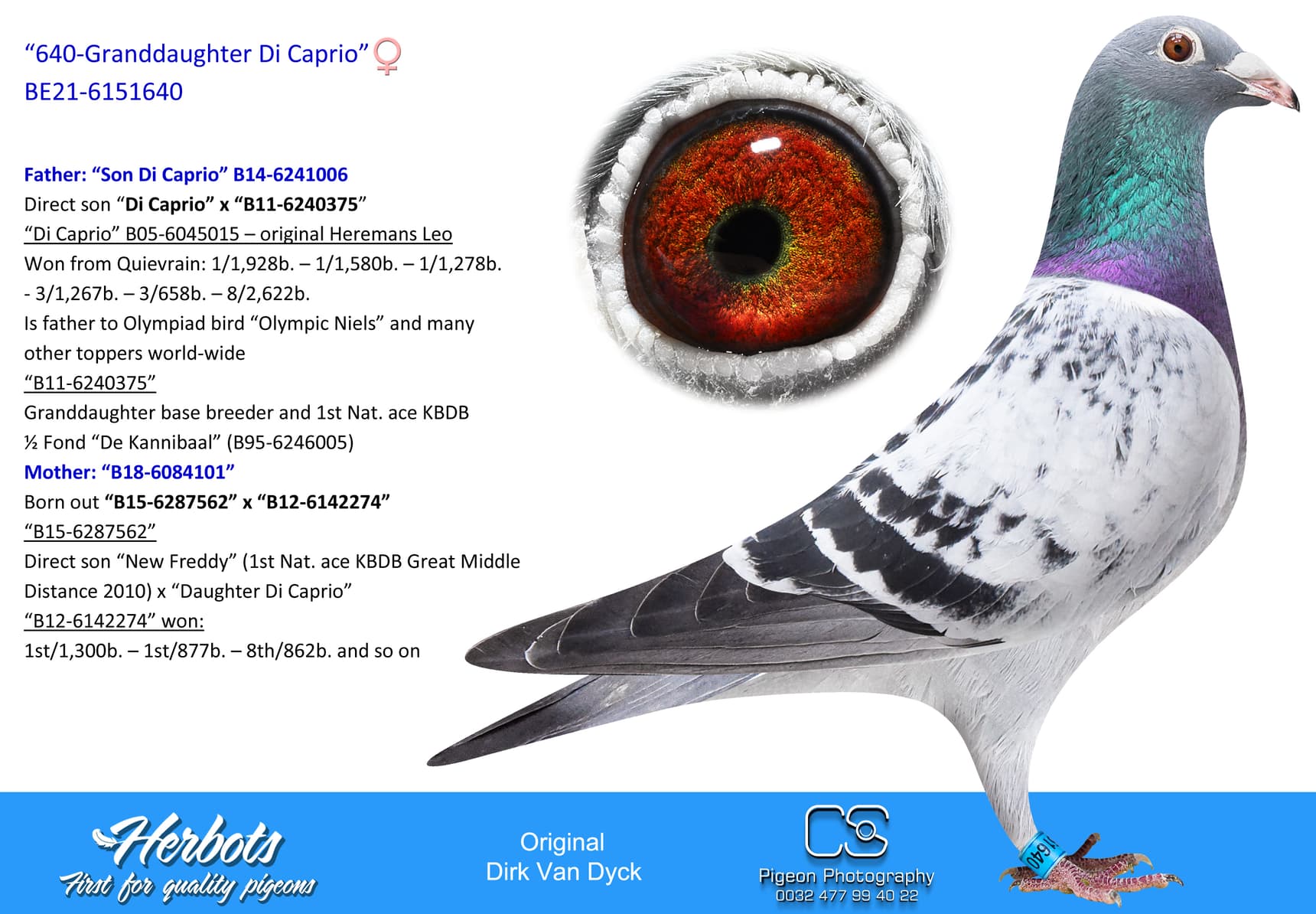 Direct daughter base breeder and 1st Nat. ace KBDB ½ Fond “De Kannibaal” (B95-6246005)