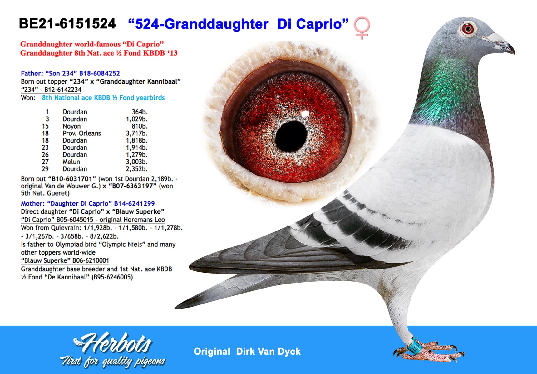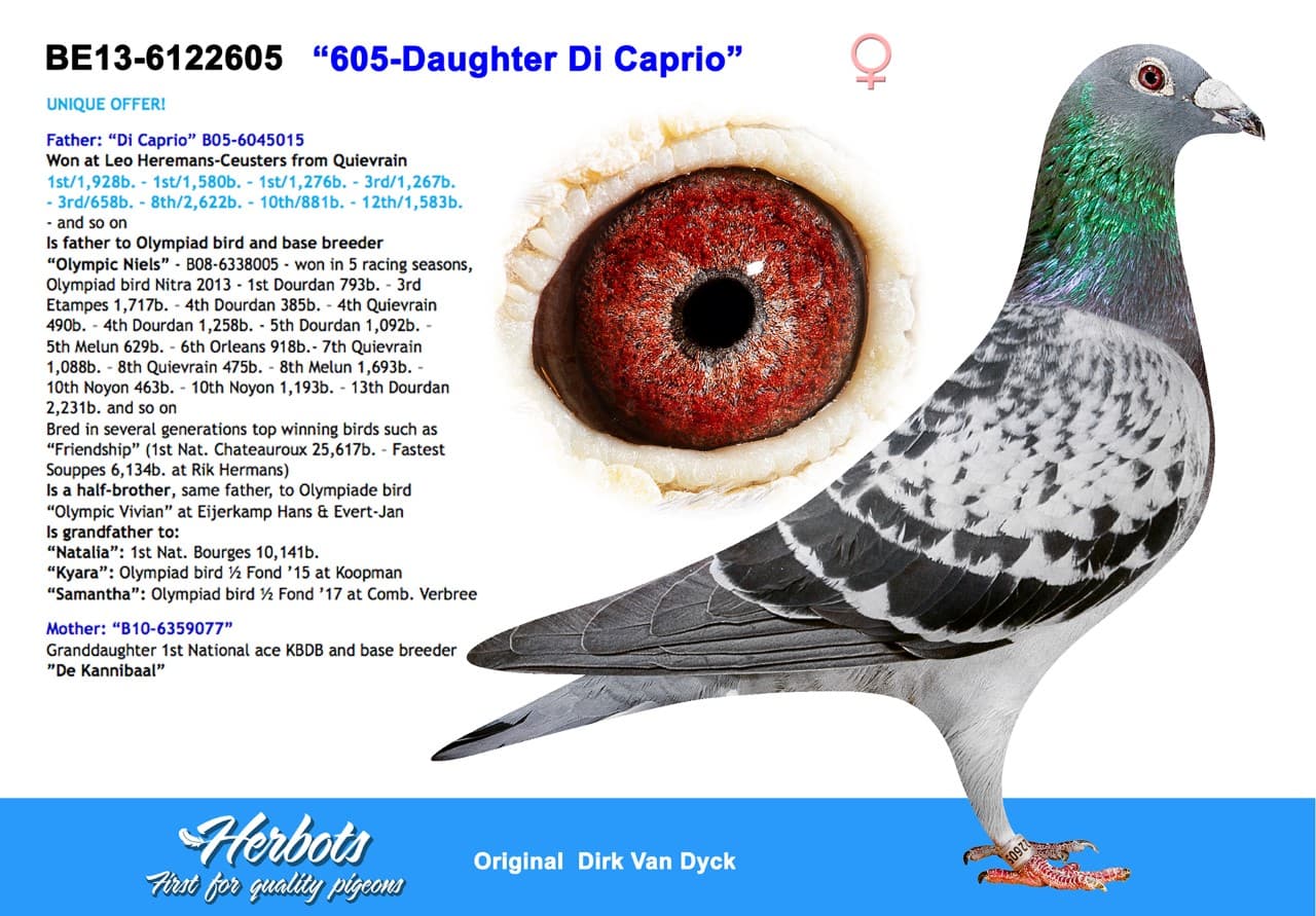 Born out “B10-6031701” (won 1st Dourdan 2,189b. - original Van de Wouwer G.) x “B07-6363197” (won 5th Nat. Gueret)