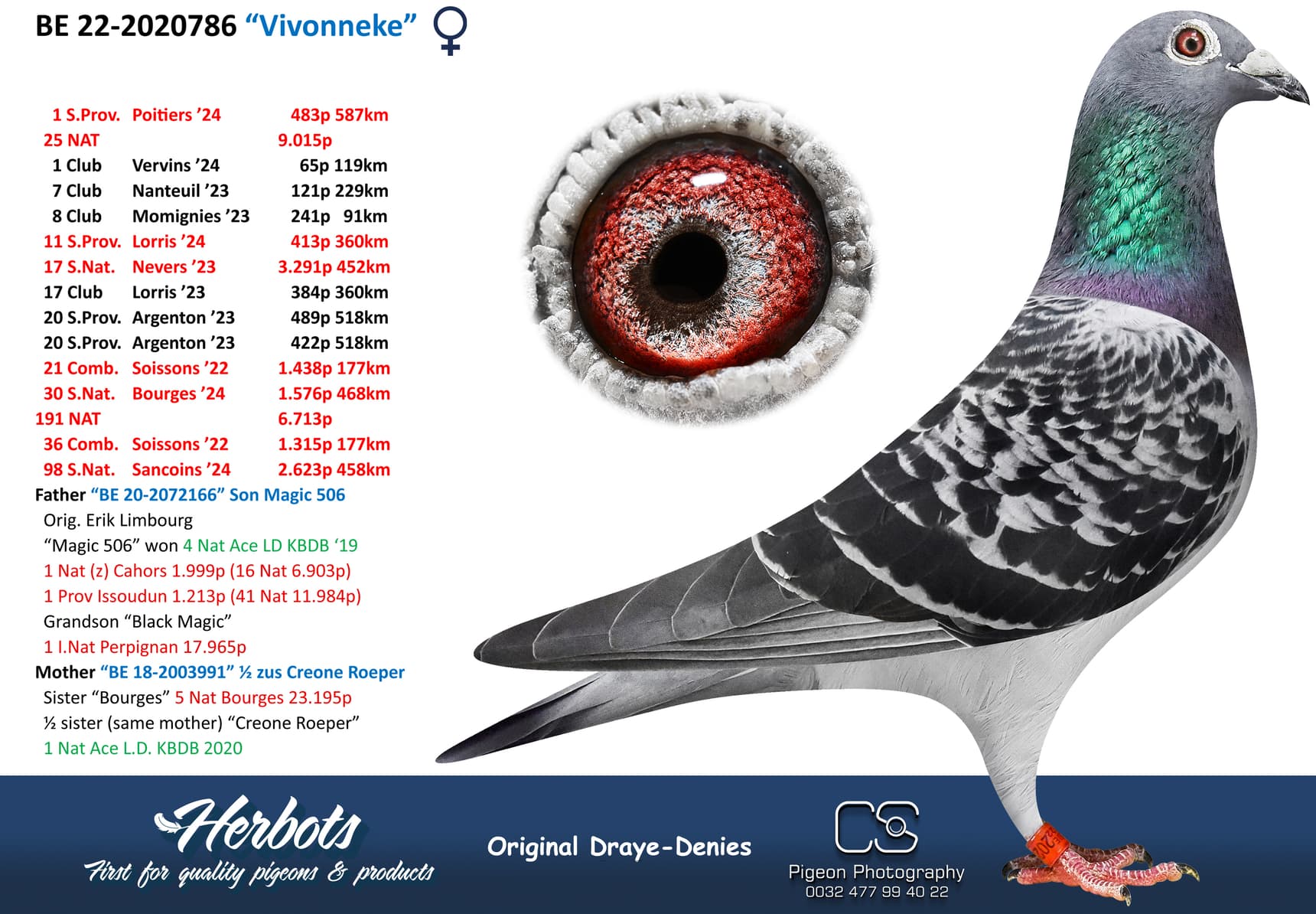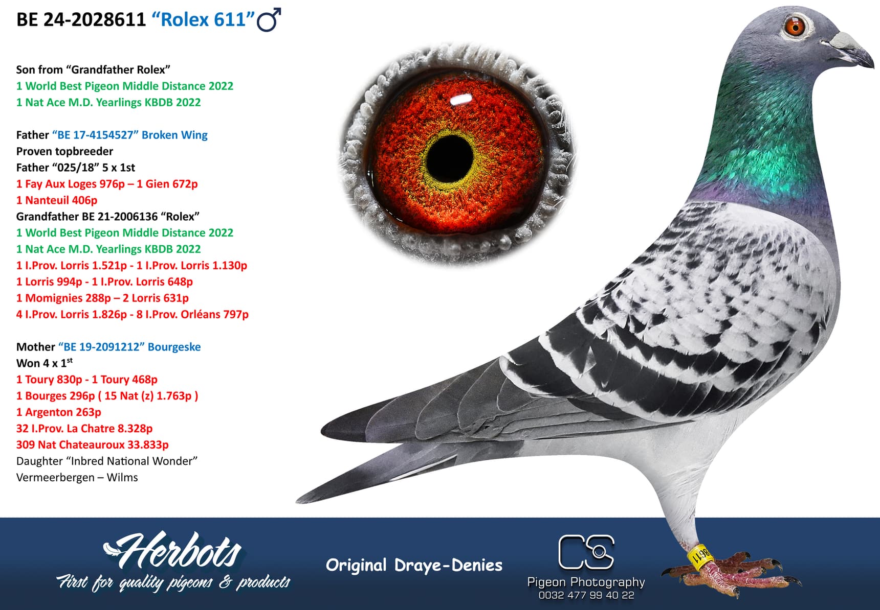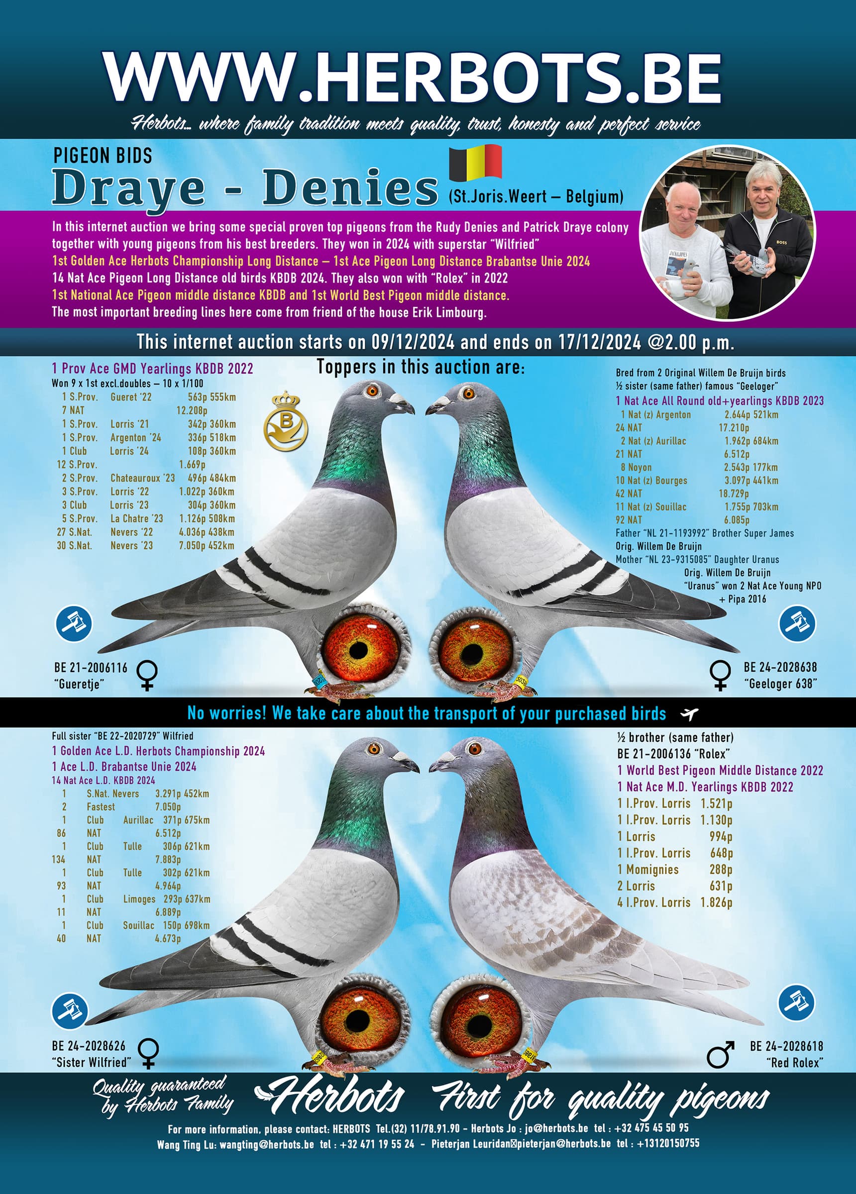 In this internet auction we bring some special proven top pigeons from the Rudy Denies and Patrick Draye colony together with young pigeons from his best breeders.