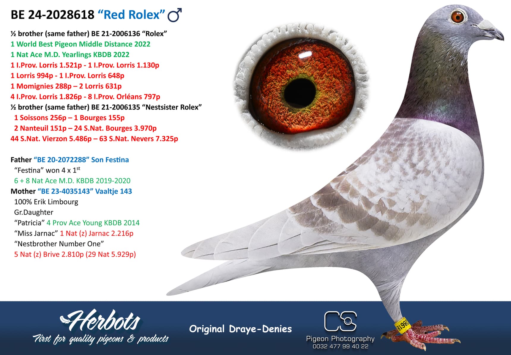 “Red Rolex” ½ brother “Rolex” 1st National Ace Pigeon middle distance KBDB 2022 and 1st World Best Pigeon middle distance 2022
