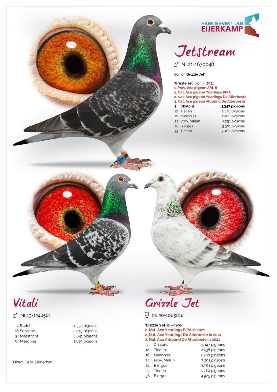 Direct son “Antar” (original Roeper W. – son “Der 269”) x “Daughter Jaguar 004” (duaghter Olympiad bird Brussels short distance ’17 – 5th Nat. ace KBDB short distance)
