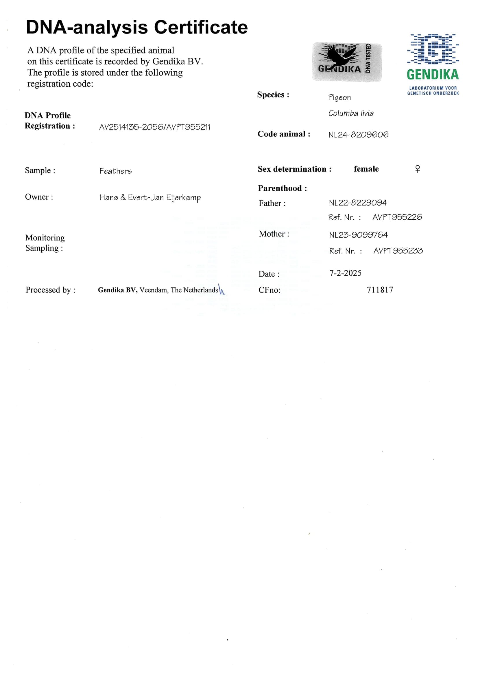 Breeder: EIJERKAMP HANS & EVERT-JAN 汉斯 & 艾佛特-杨·爱亚卡普