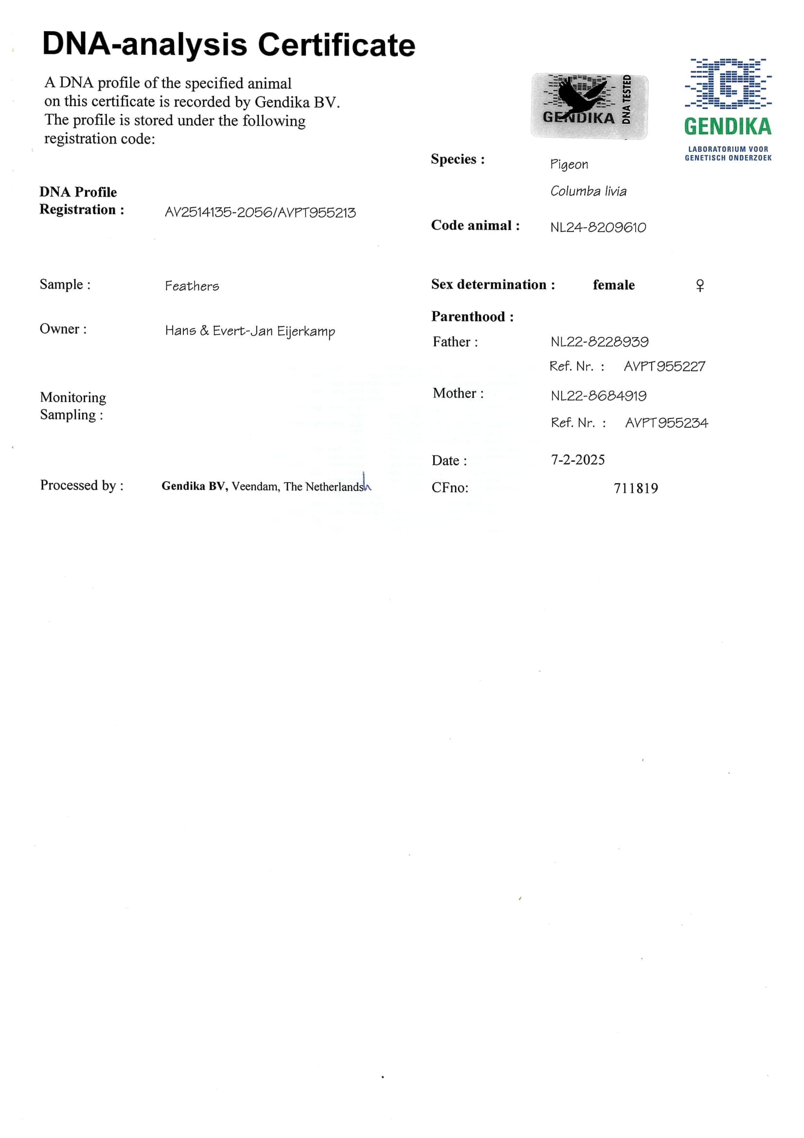 Breeder: EIJERKAMP HANS & EVERT-JAN 汉斯 & 艾佛特-杨·爱亚卡普