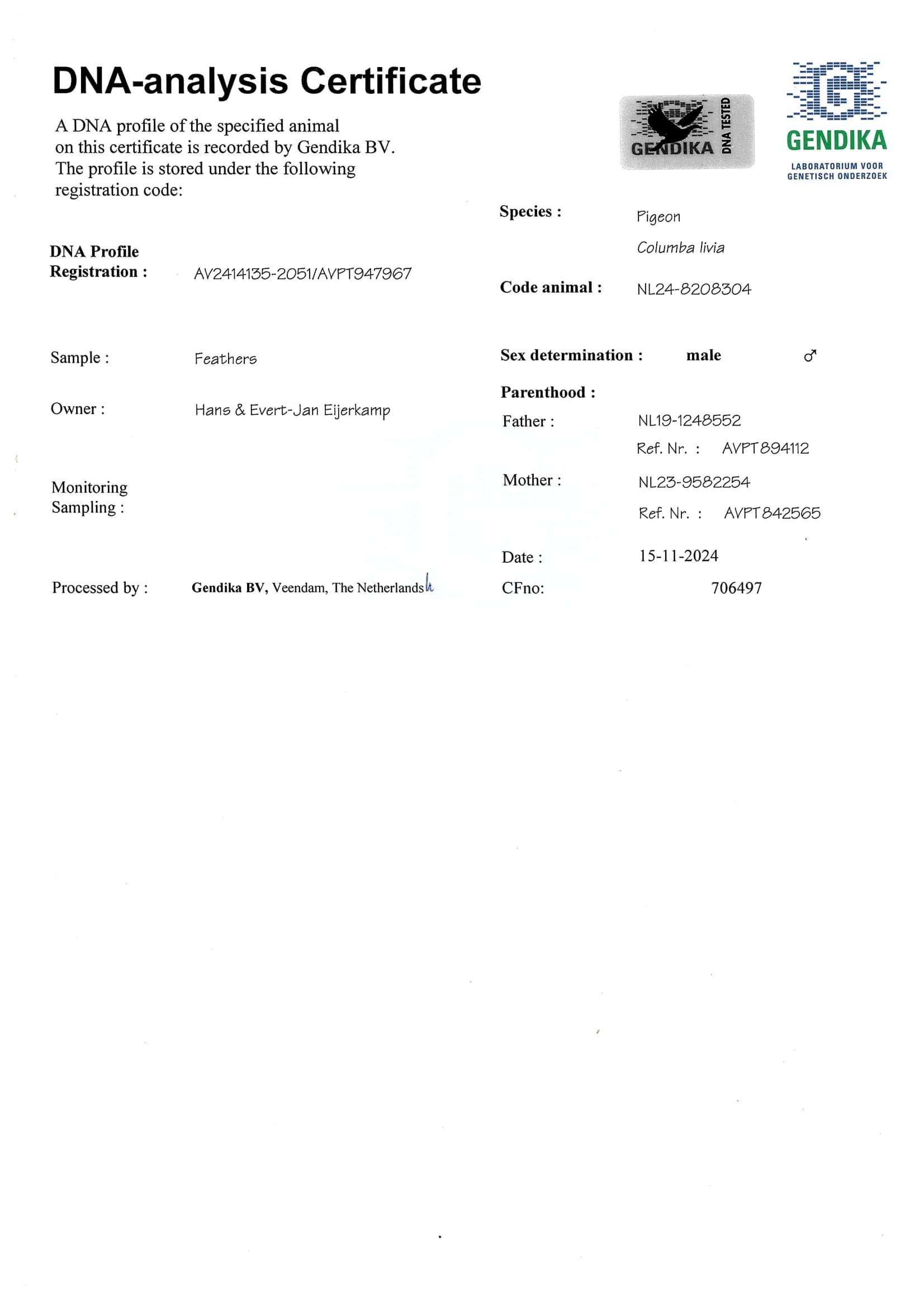 Breeder: EIJERKAMP HANS & EVERT-JAN 汉斯 & 艾佛特-杨·爱亚卡普