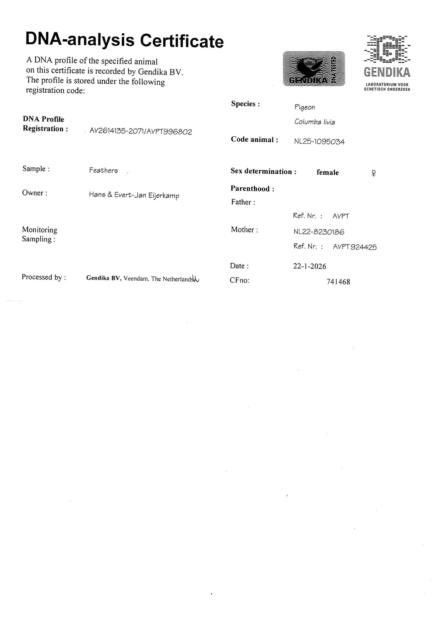 “Viton” x “Daughter Goed Grijs” are (grand) parents of: