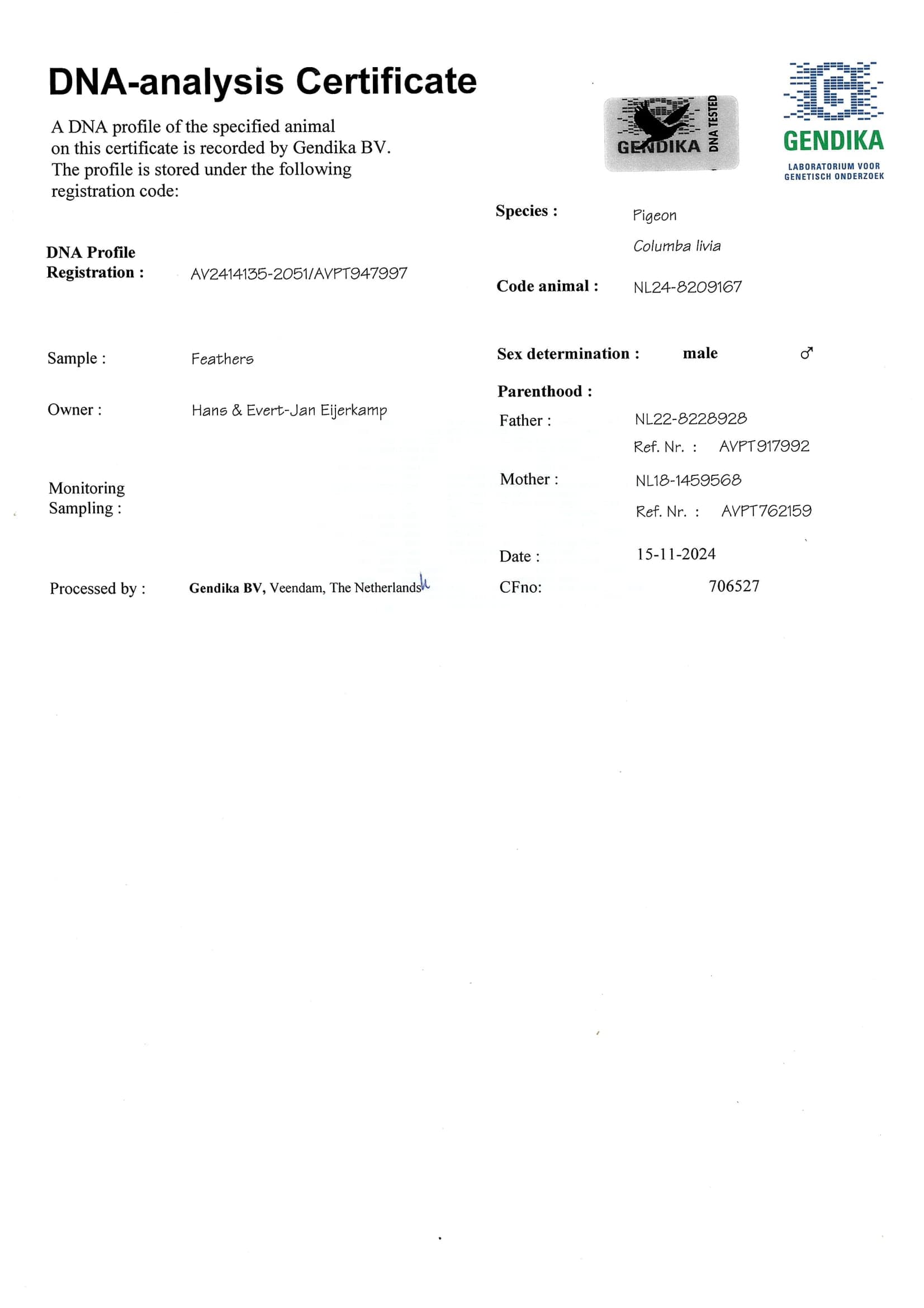 Breeder: EIJERKAMP HANS & EVERT-JAN 汉斯 & 艾佛特-杨·爱亚卡普