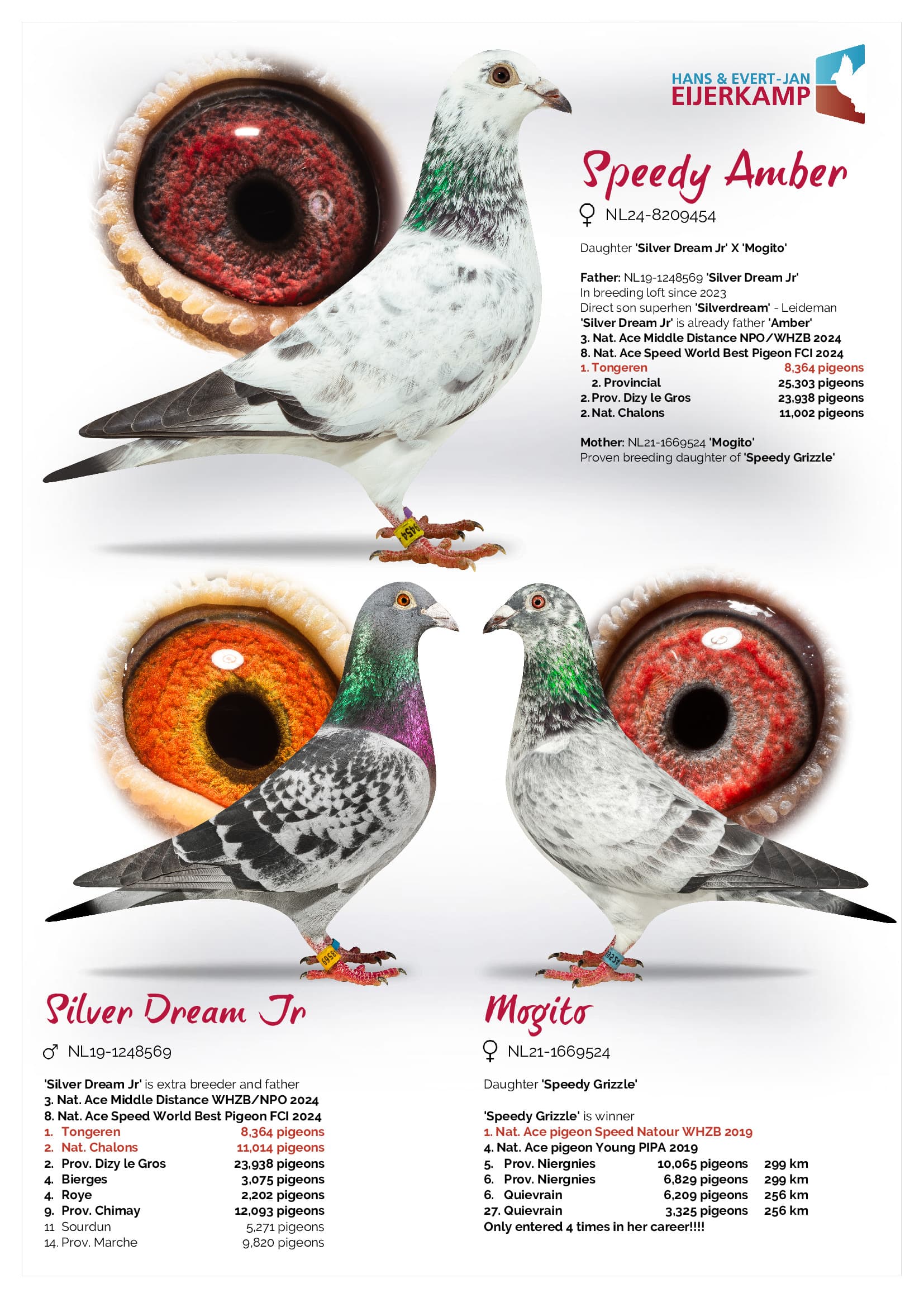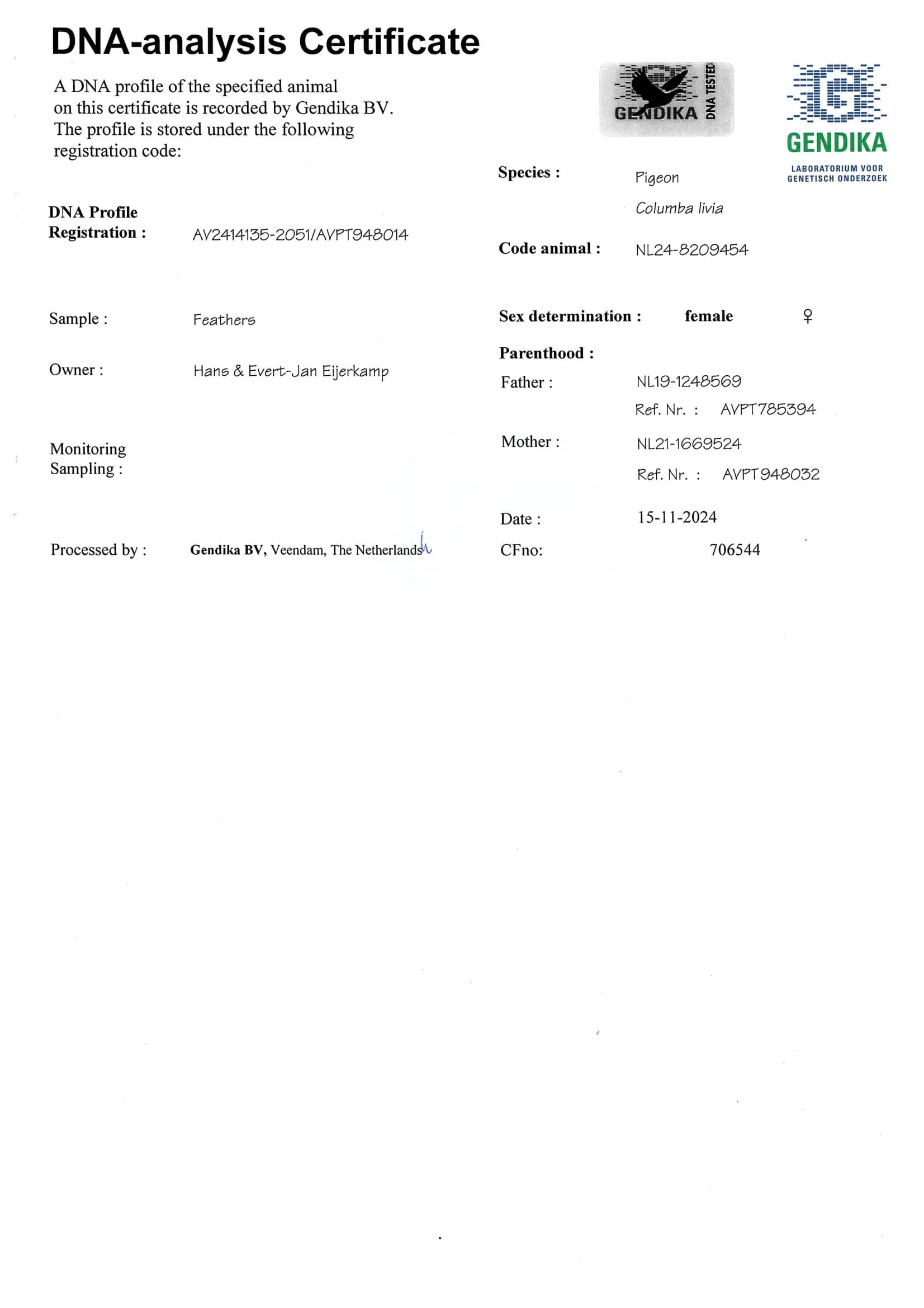 Born out “Young Beste 787” (half-brother to the father of 1st Nat. ace Fondspiegel ‘14/’15) x “Silver Dream” (is mother to “Floyd”, “Jet”, “Ace 820” at Leideman – daughter 1st Nat. ace KBDB short distance “Blue Dream” x “Alina” – daughter “Kleine Dirk” Koopman)