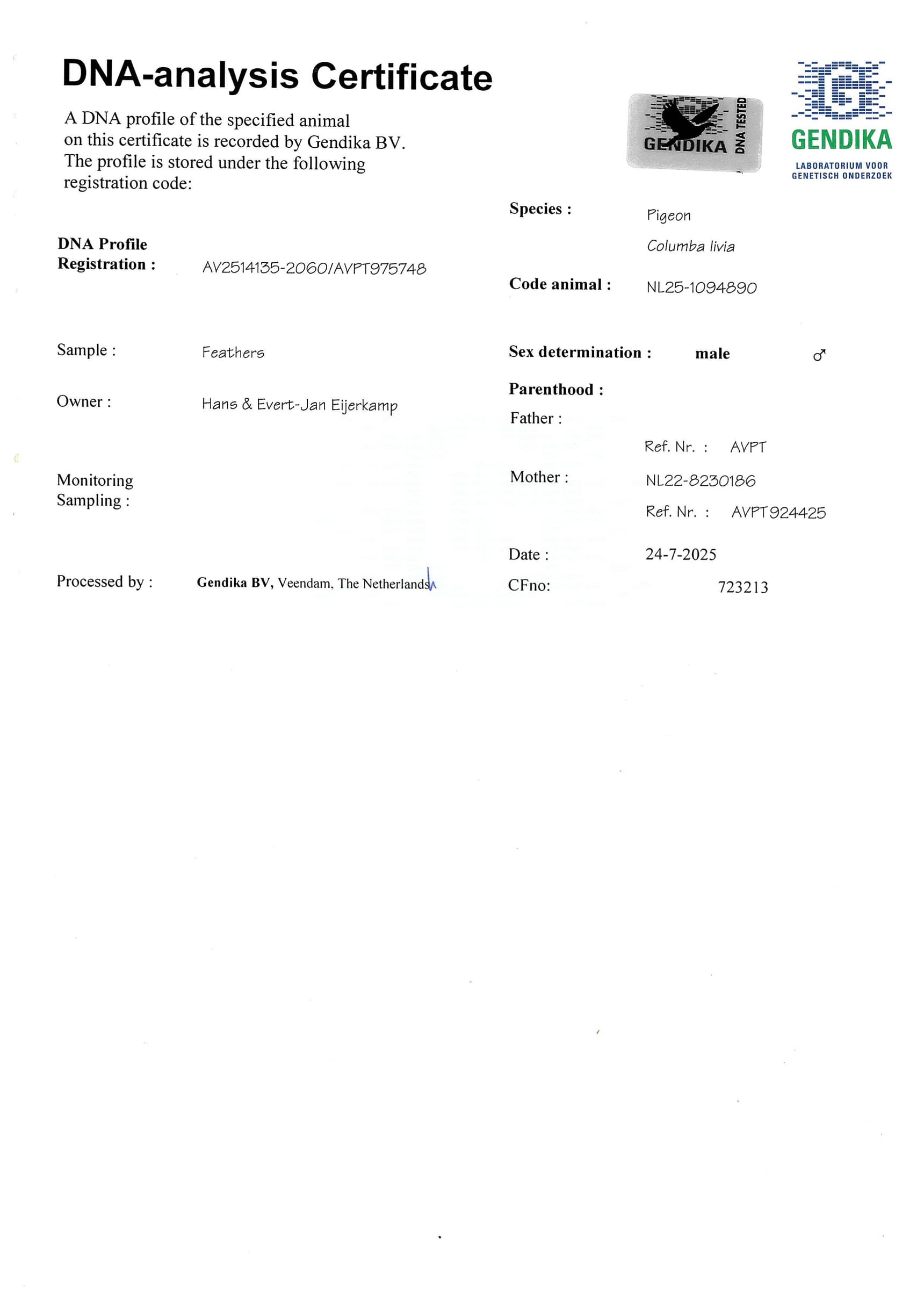 Breeder: EIJERKAMP HANS & EVERT-JAN 汉斯 & 艾佛特-杨·爱亚卡普