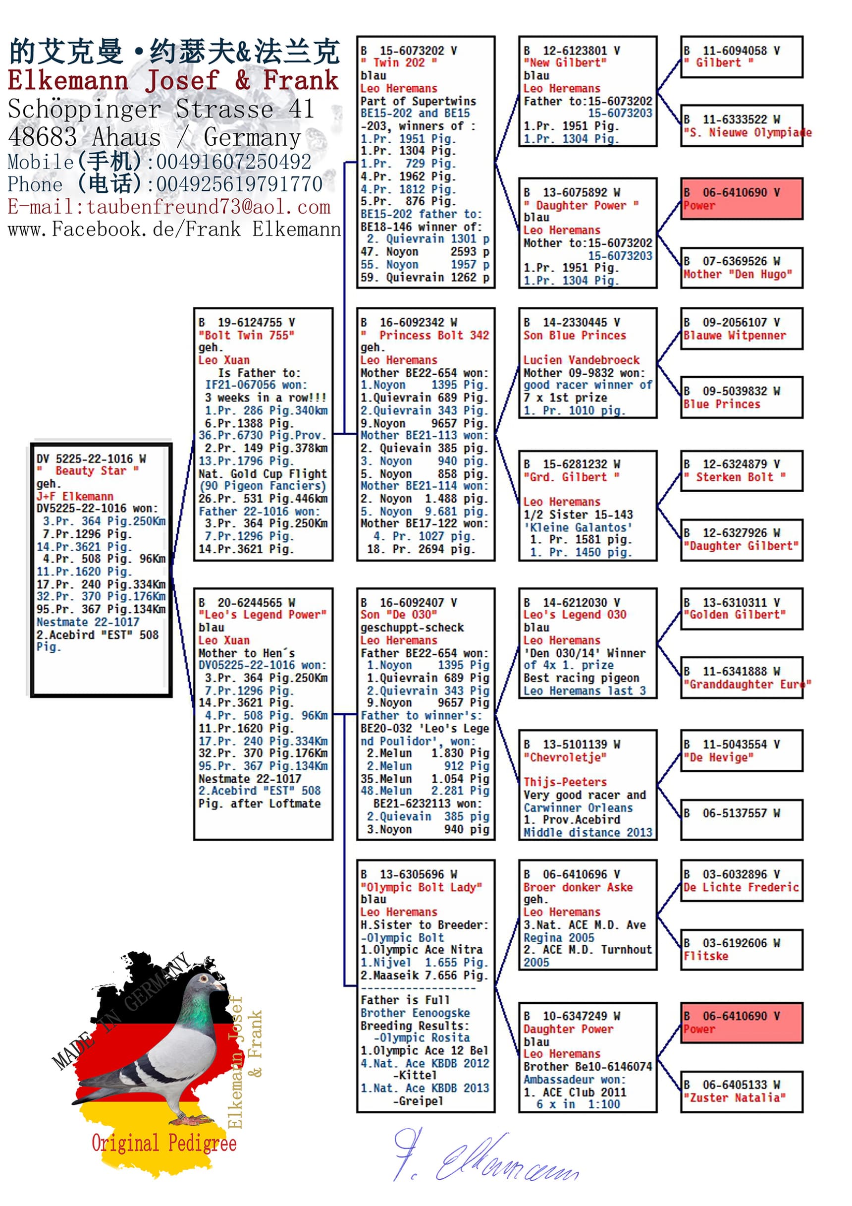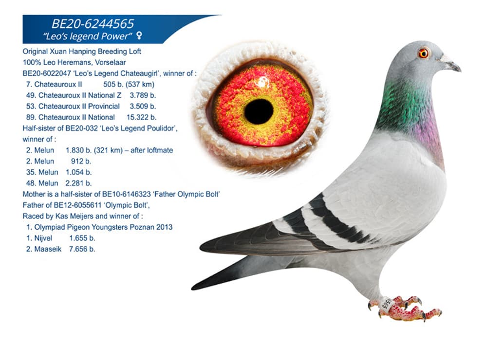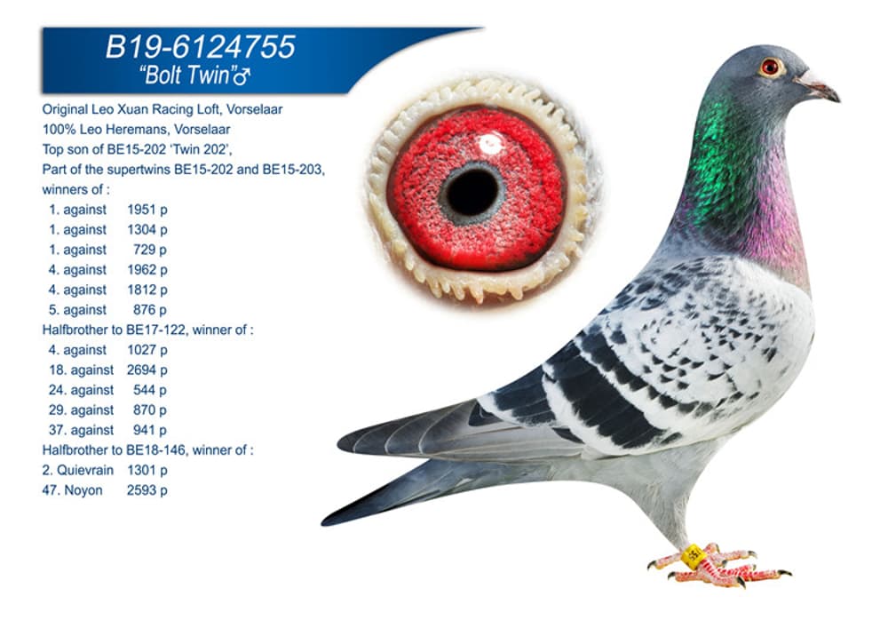 Born out “Twin 202” (Grandson “Power” and “Gilbert”) x “Princess Bolt 342” (top breeding hen – mother to 2 x 1st prize winner)