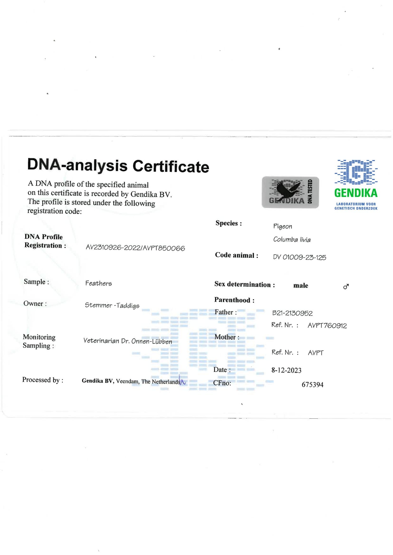 “Olympic Rico” B20-5031856 - Vrancken Berden won: