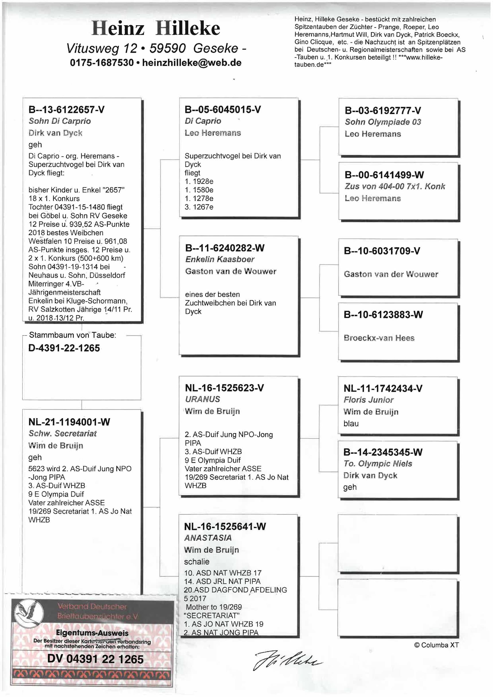 Is a half-brother, same father, to Olympiad bird and base breeder “Olympic Vivian” at Eijerkamp