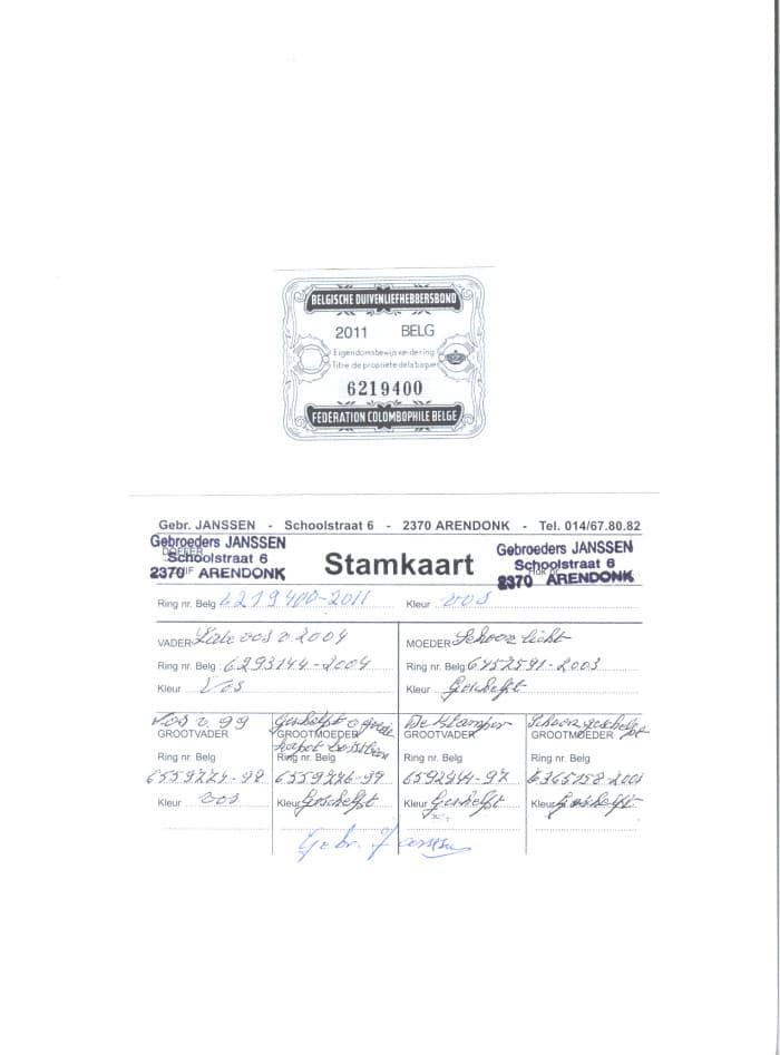 Breeder: 100% Gebr. Janssen - Arendonk 纯詹森兄弟