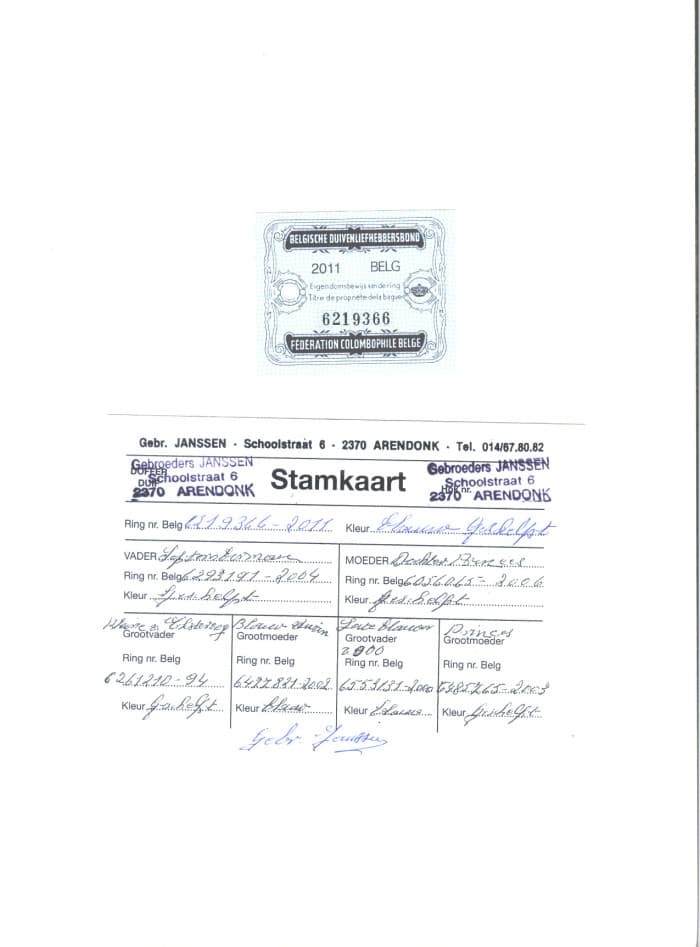 Breeder: 100% Gebr. Janssen - Arendonk 纯詹森兄弟