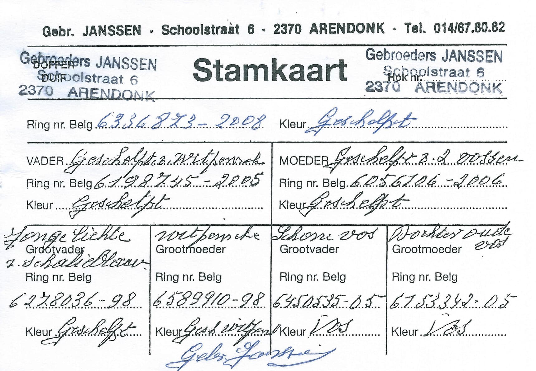 Breeder: 100% Gebr. Janssen - Arendonk 纯詹森兄弟