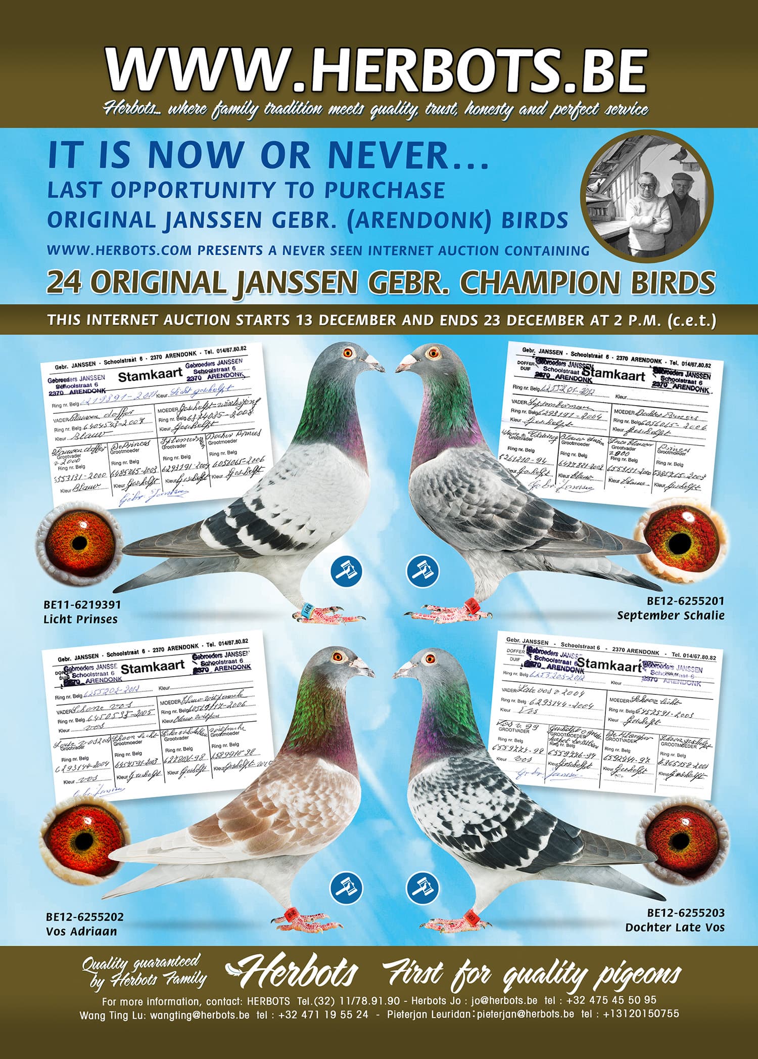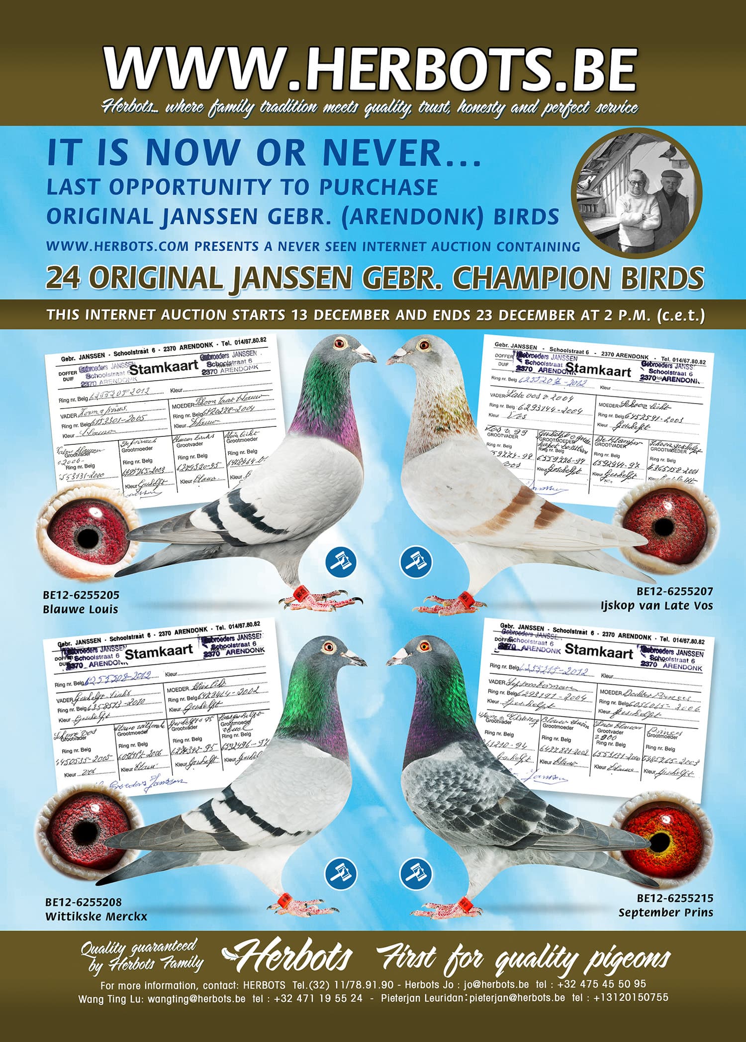 HERBOTS IMEX 贺伯特Grandfather olympiad bird Poznan '19 - "Late Blauwen van 2004" x "Schoon Laat Blauw"
