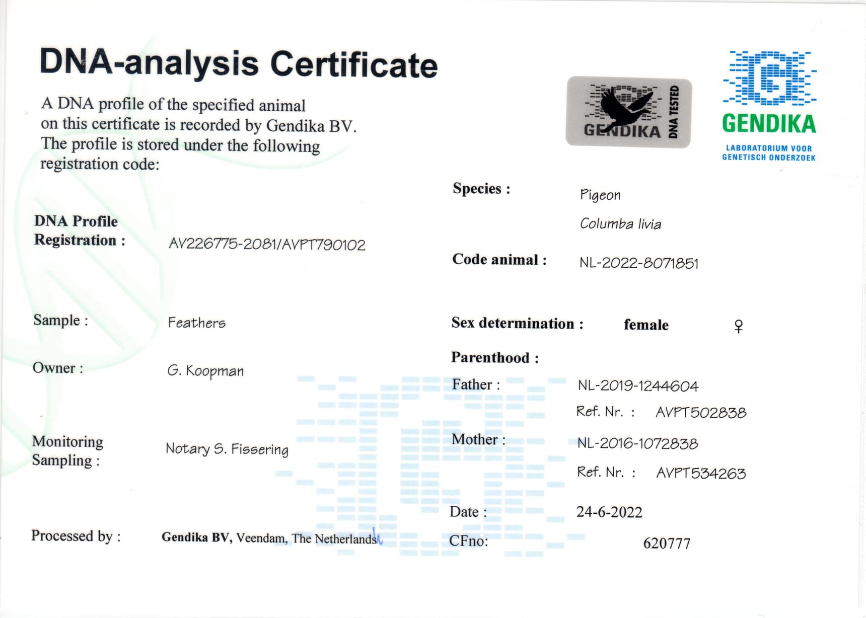 Breeder: KOOPMAN GERARD 吉拉德·考夫曼