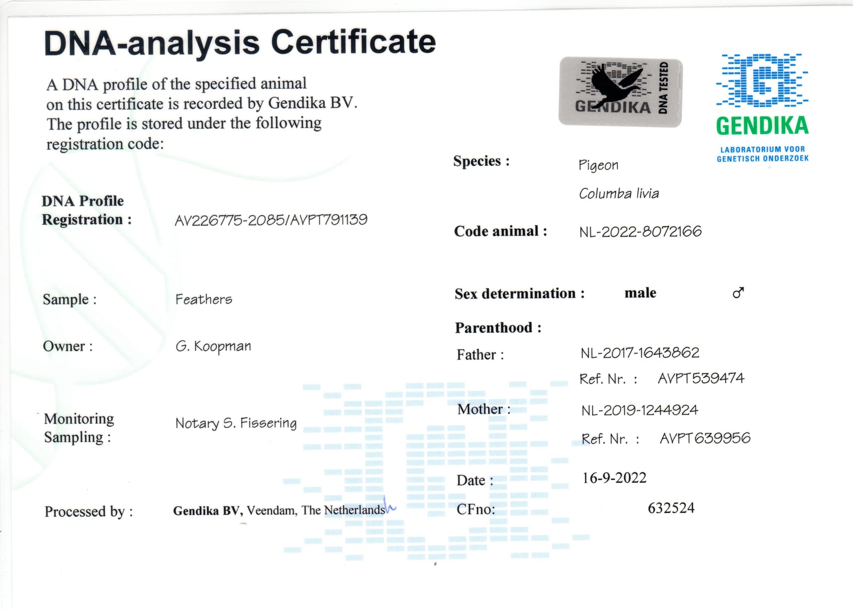 Born out “Golden Capri” (direct son “Di Caprio” Heremans) x “Goudband”  (mother to “Manu” , “Amadi”. Direct daughter “Cassius” x “Gicara”)