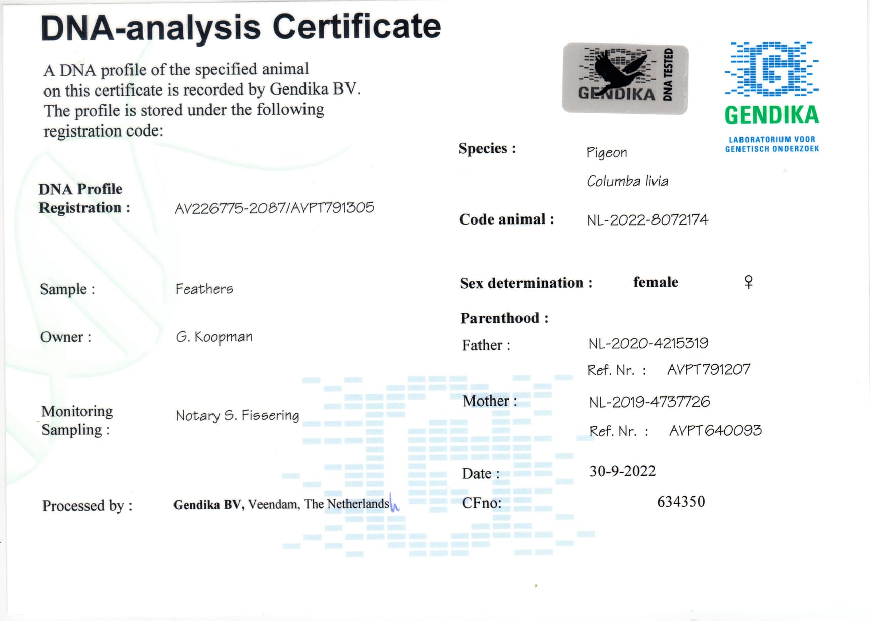 Won: 1st Nat. ace WHZB one-day-fond ’21– 3rd Olympiad bird one-day-fond– 1st Nat. ace “Allerbeste” – 1st Nat. ace “Fondspiegel” – 1st NPO Issoudun at Fokkinga