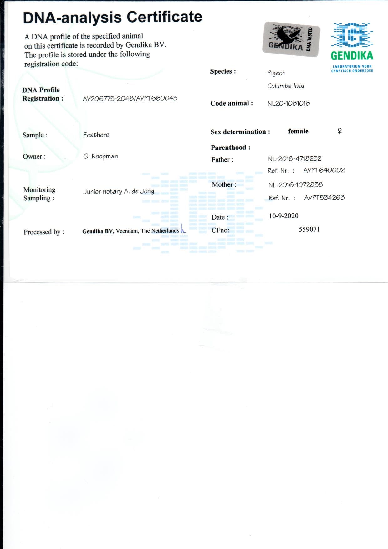 Breeder: KOOPMAN GERARD 吉拉德·考夫曼