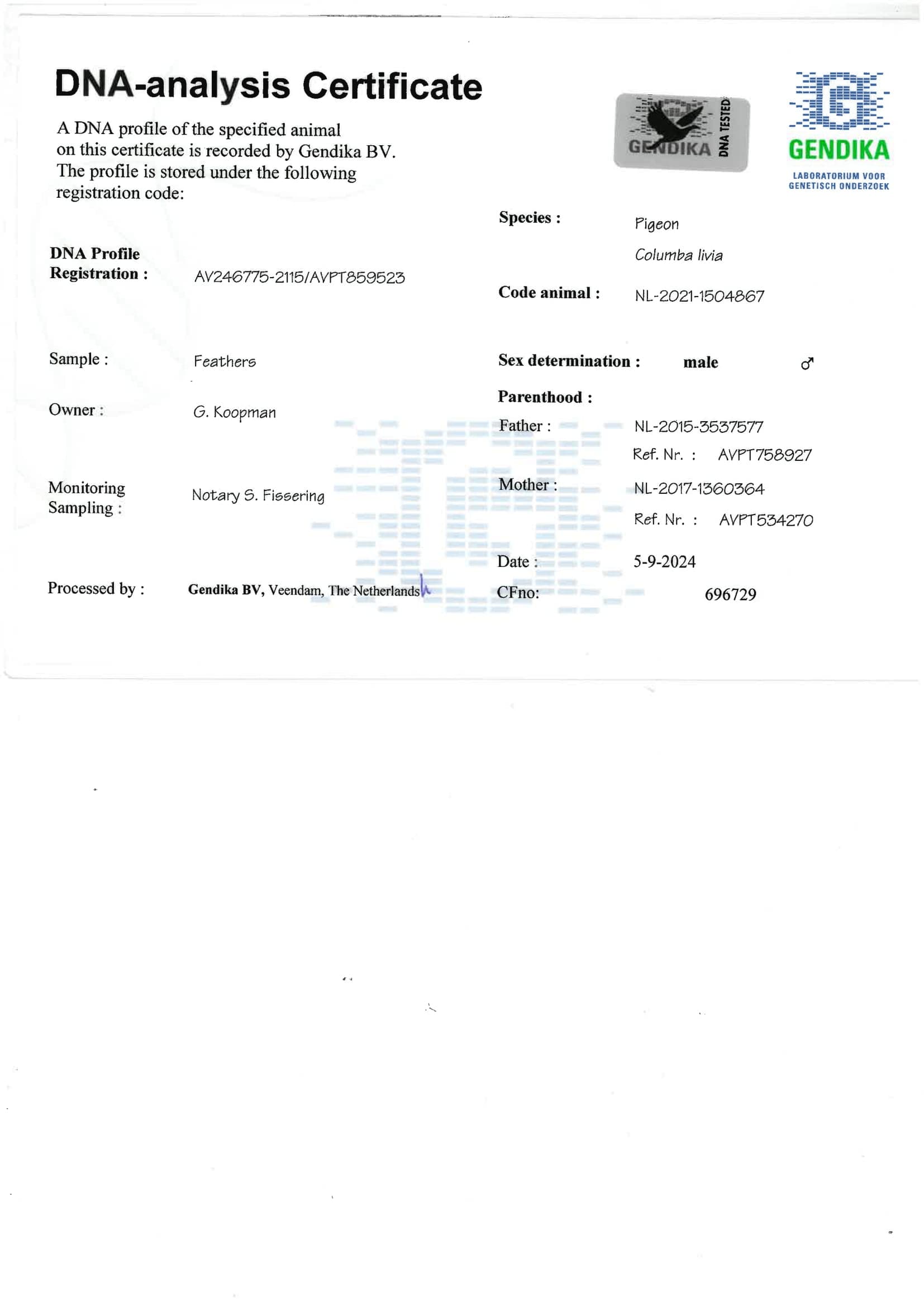Father: “Walter” NL15-3537577 – original P.W.A. v/d Meulen
