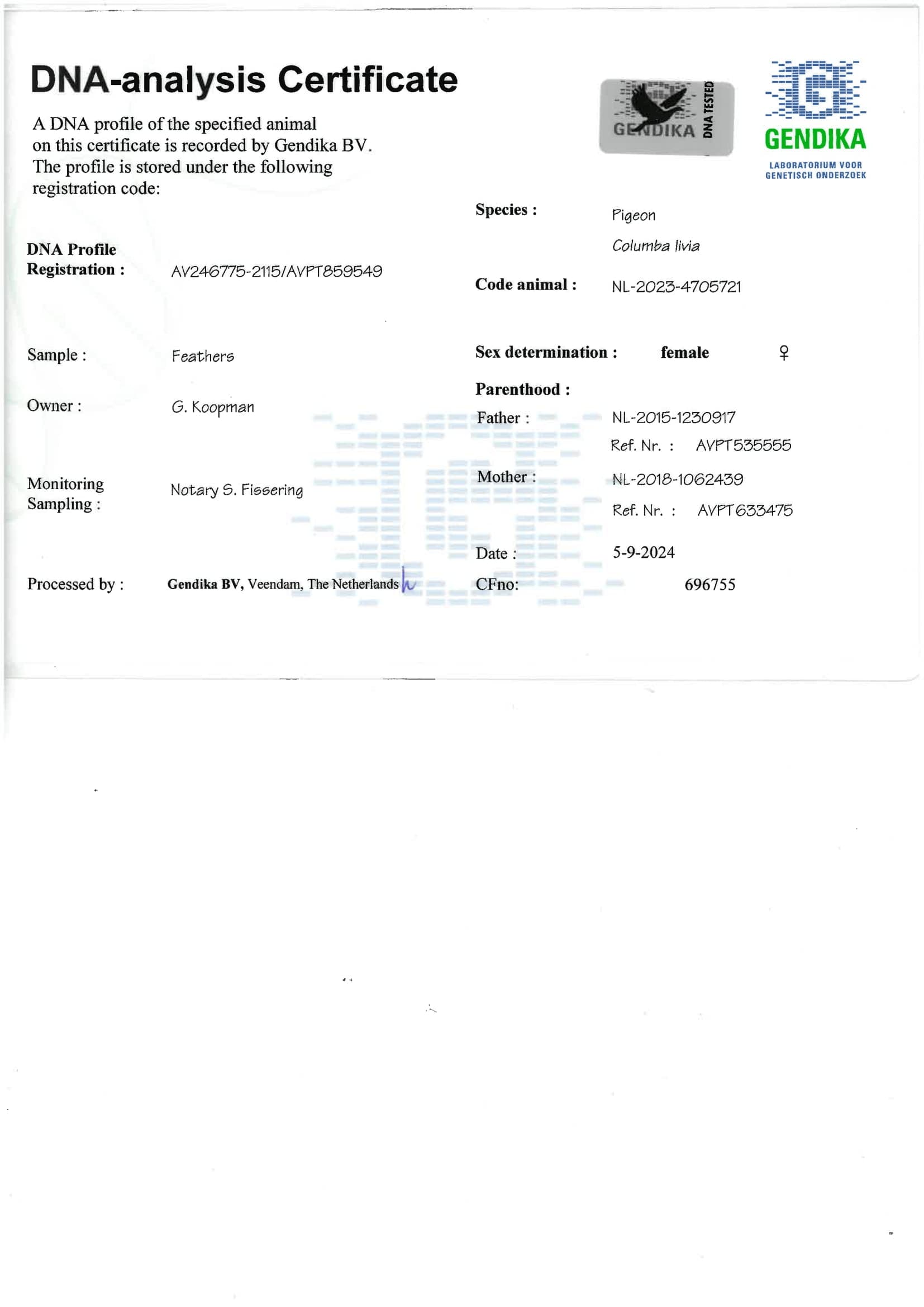 Breeder: KOOPMAN GERARD 吉拉德·考夫曼