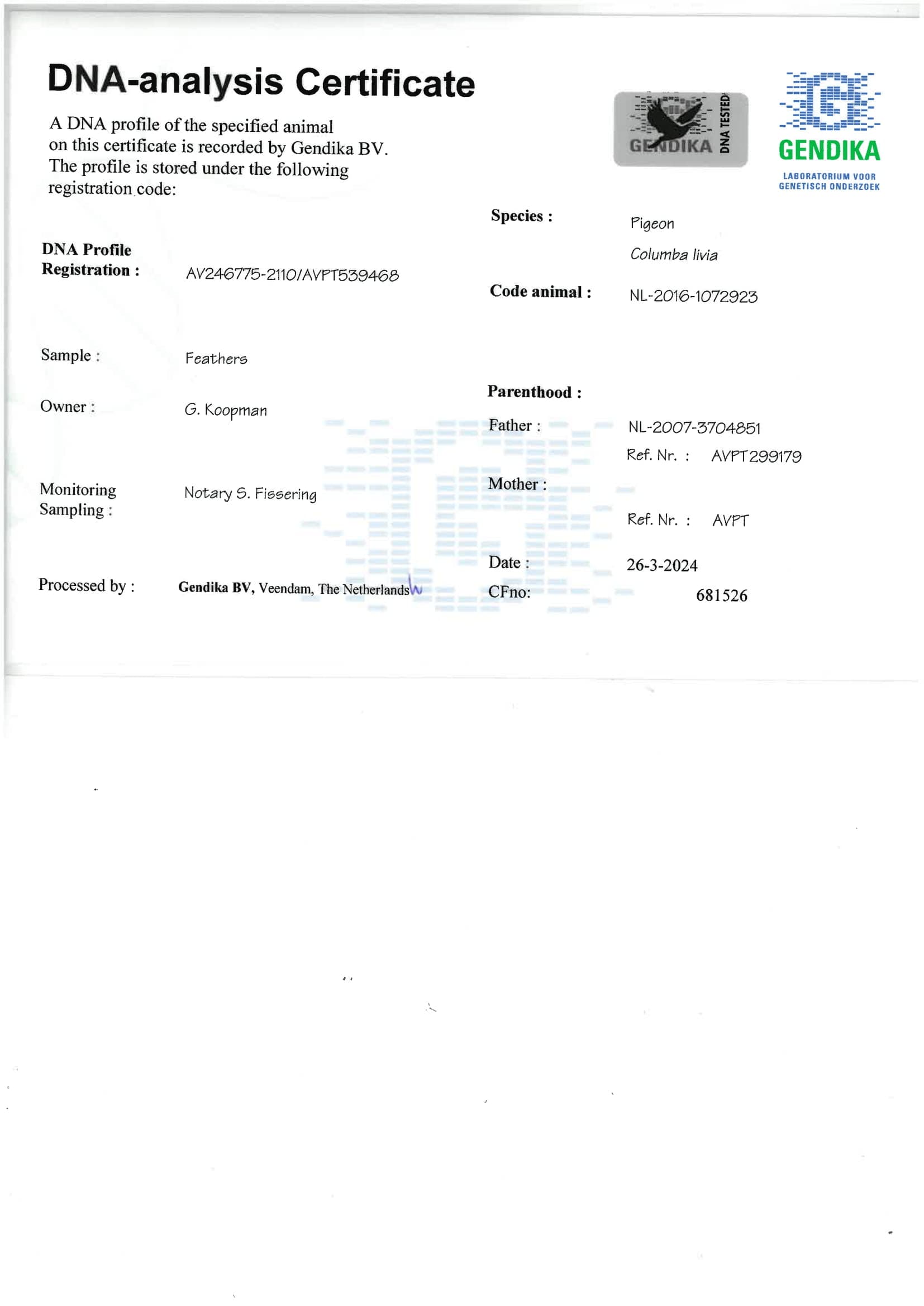 Breeder: KOOPMAN GERARD 吉拉德·考夫曼