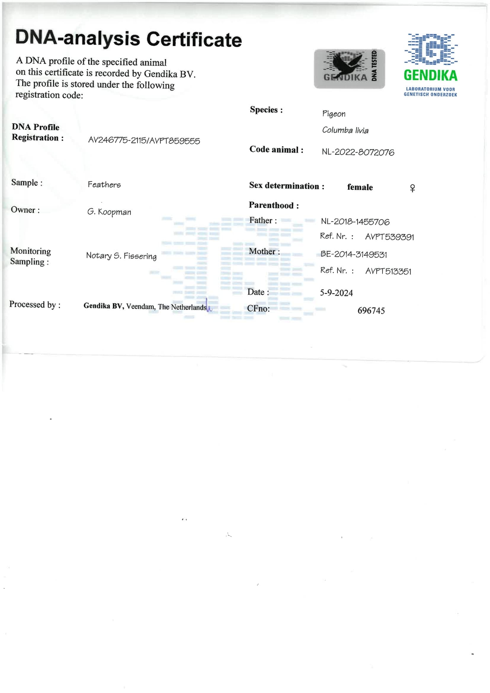 Breeder: KOOPMAN GERARD 吉拉德·考夫曼
