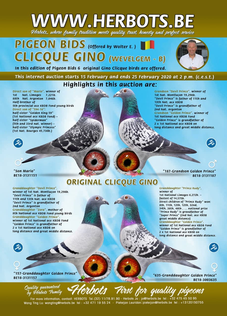 Pigeon Bids Gino Clicque