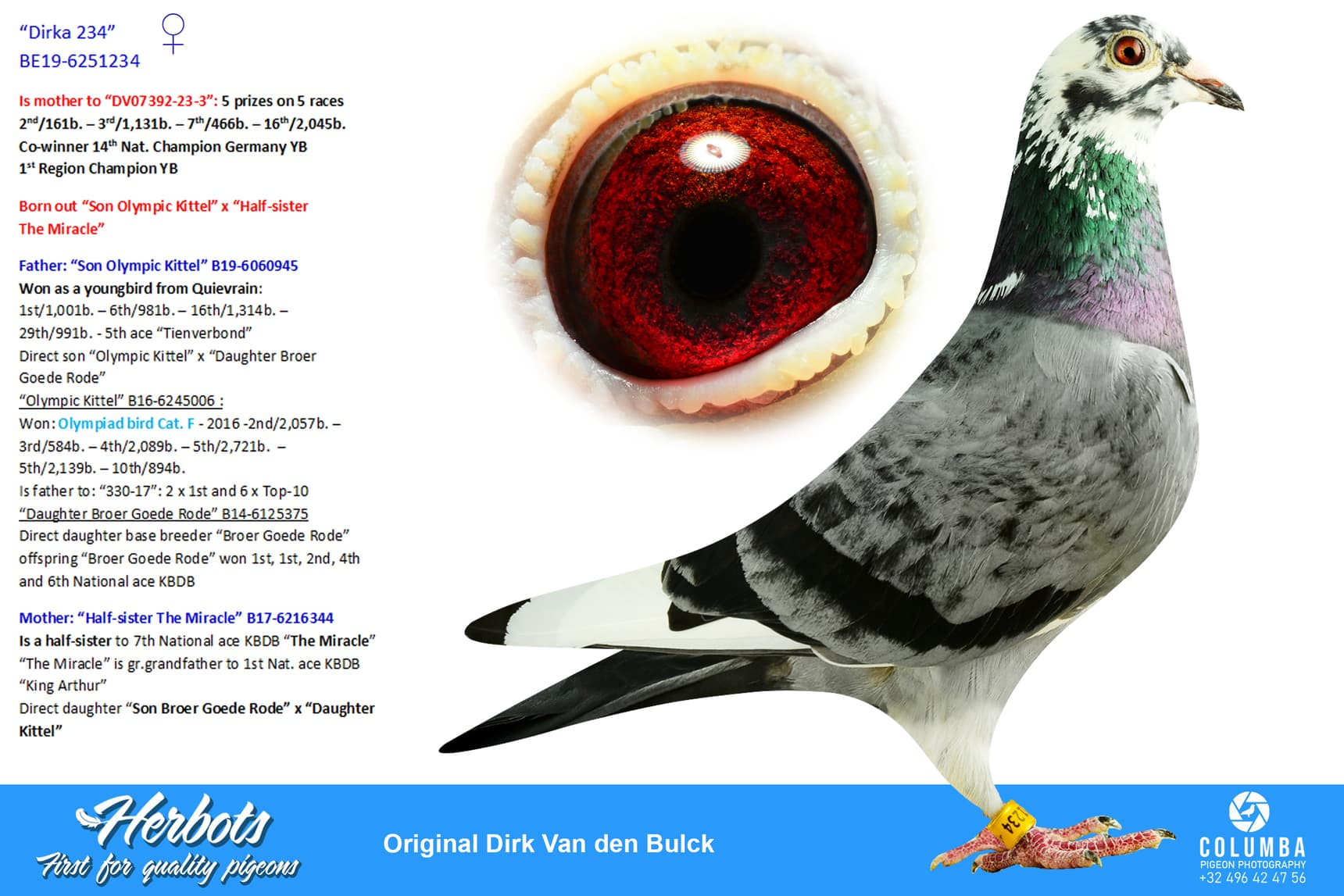 Is a half-sister to 1st ace “Tienverbond”, 2nd Prov. ace and 7th National ace KBDB