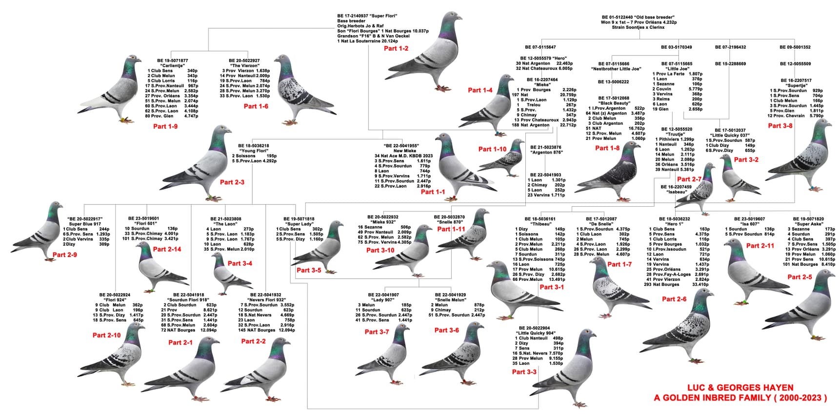 The latest top references thanks to this family are 1st World Best Pigeon M.D. Belgium 2023 – 1 Best M.D. old birds 2023 – 1 Prov Ace M.D. KBDB 2023