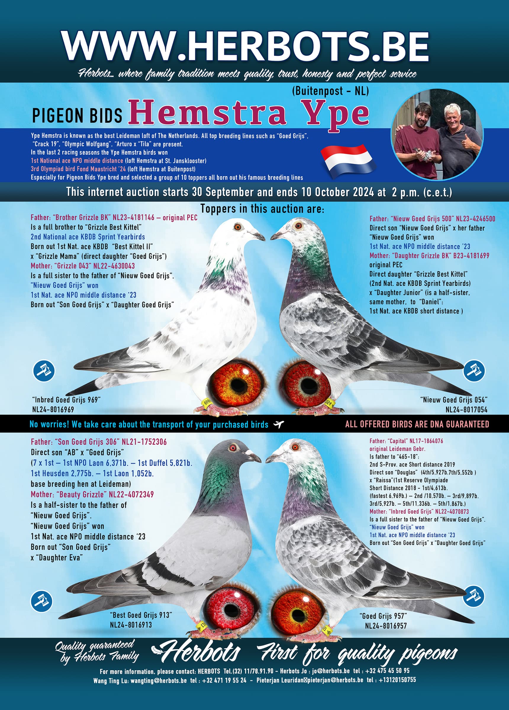 Especially for Pigeon Bids Ype selected a top group of 2024-birds are related to his current champion breeders