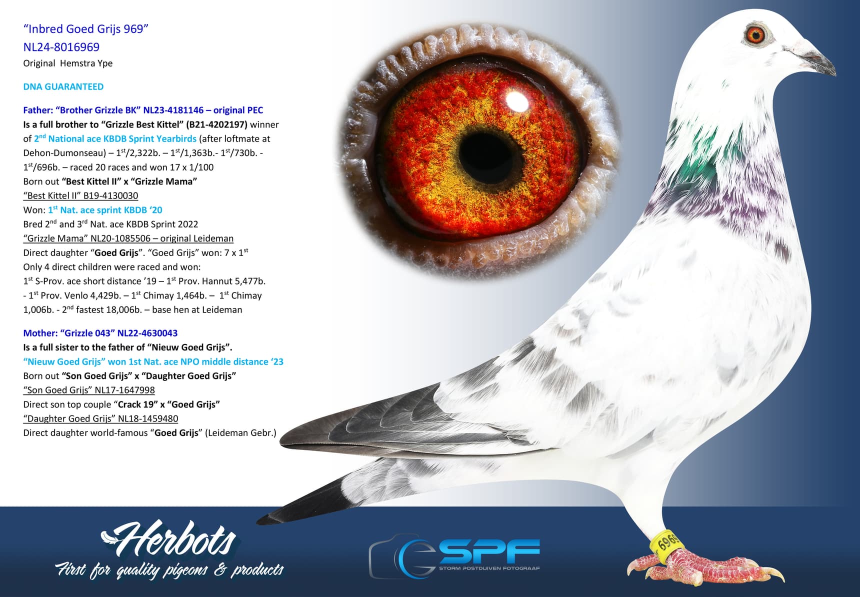 Born out “Best Kittel II” (1st Nat. ace KBDB short distance) x “Grizzle Mama”(daughter “Goed Grijs”)