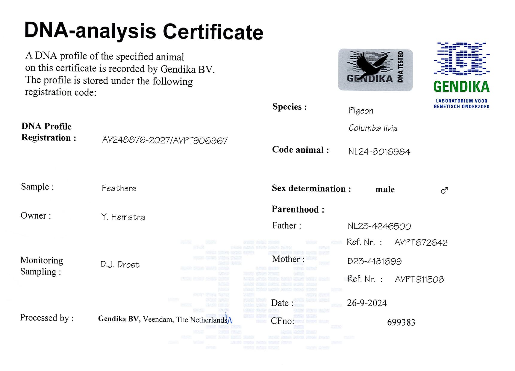 Breeder: HEMSTRA YPE 伊普·赫米斯特拉