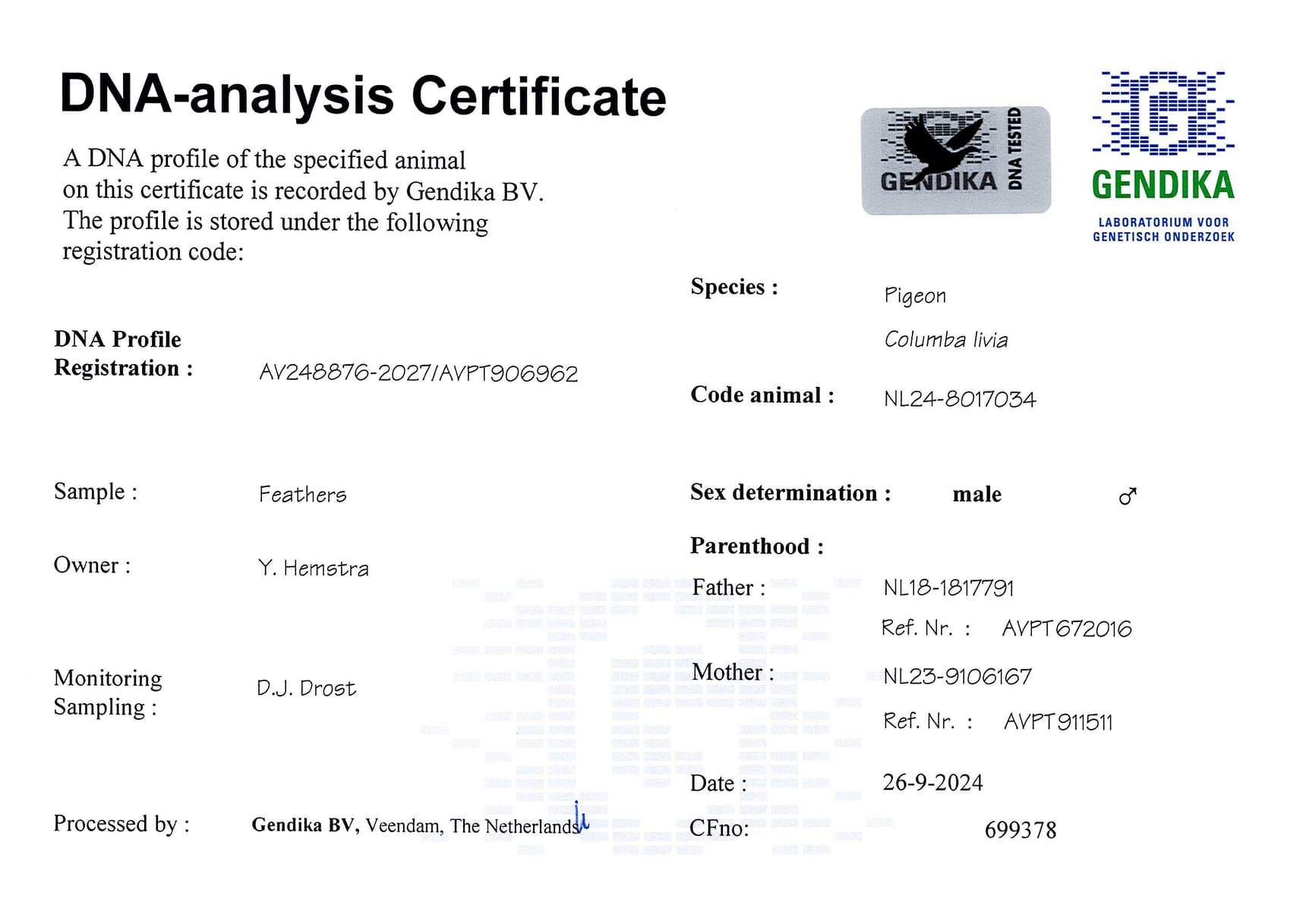 Breeder: HEMSTRA YPE 伊普·赫米斯特拉